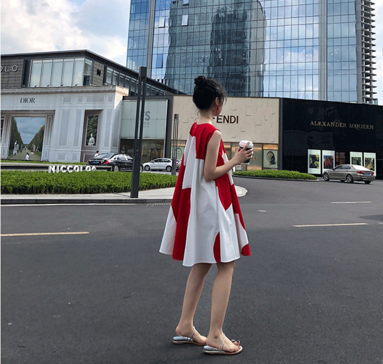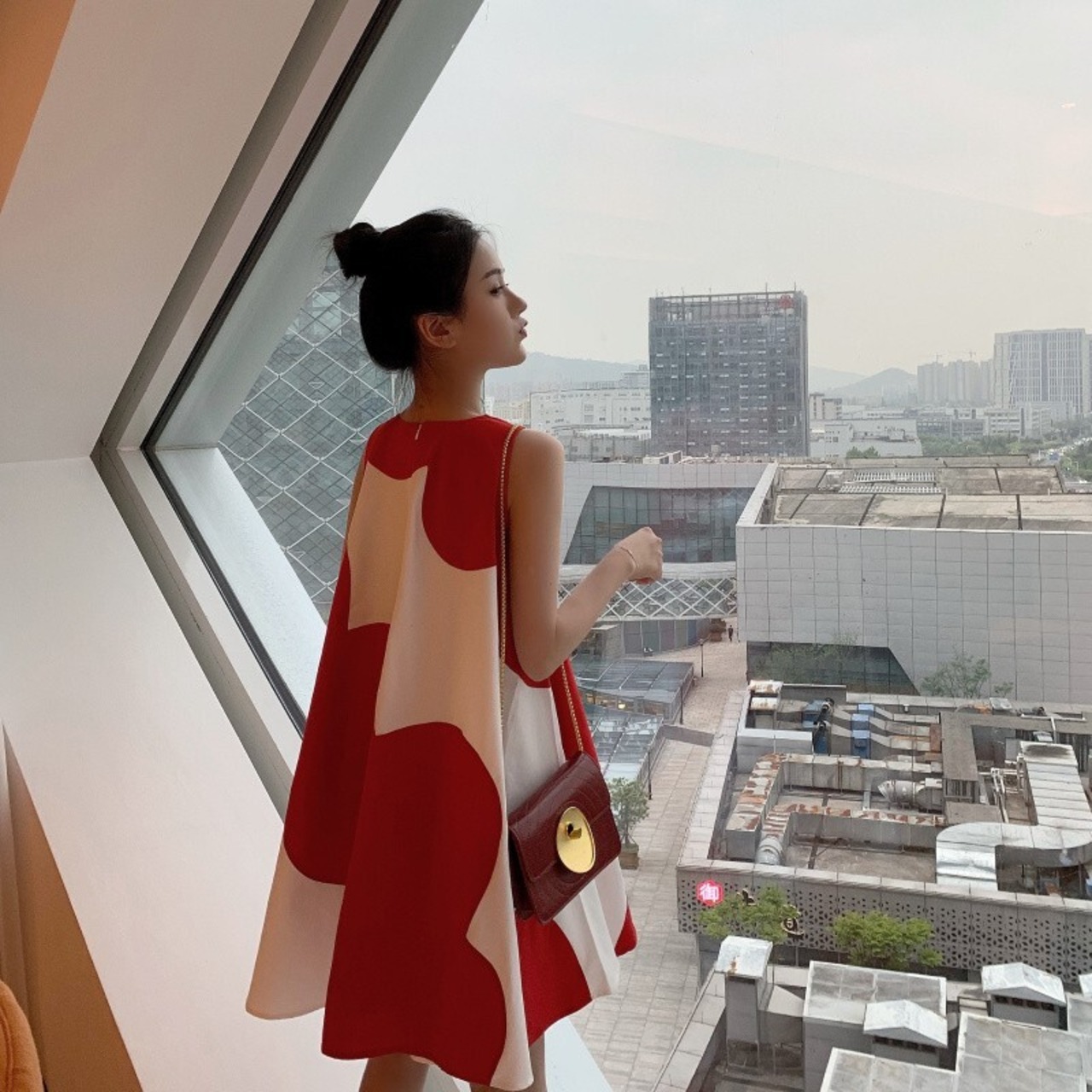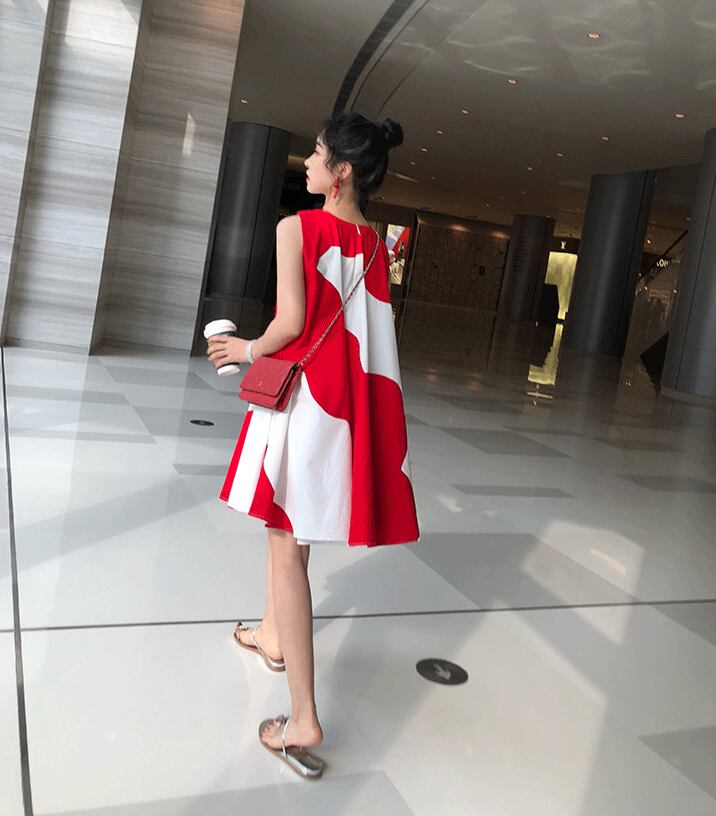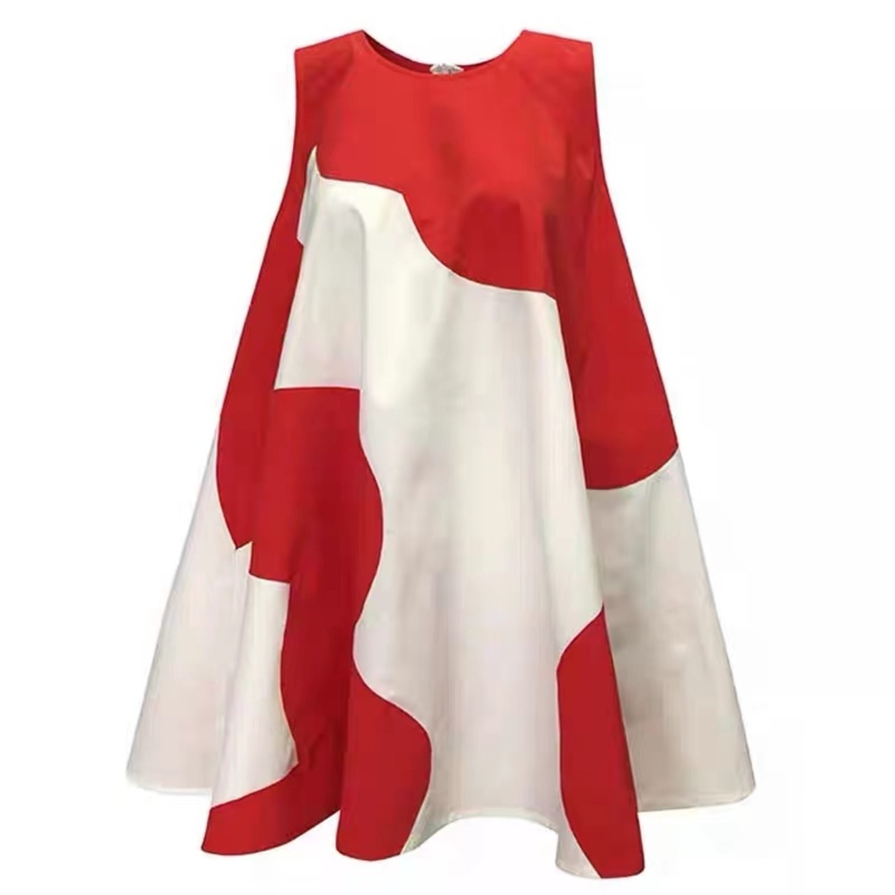 ワンピース フレアワンピース 膝上 袖なし ラウンドネック ワイド かわいい 大人可愛い カジュアル レトロ 大人女子 キュート ガーリー 主役級 ボタニカル 夏 10代 20代 30代 デート お出かけ 女子会 休日 パーティー イベント リゾート 旅行 海 プール 高原 韓国 韓国系 楽ちん M L XL 2XL 白 赤 バイカラー