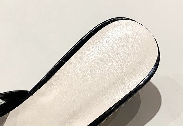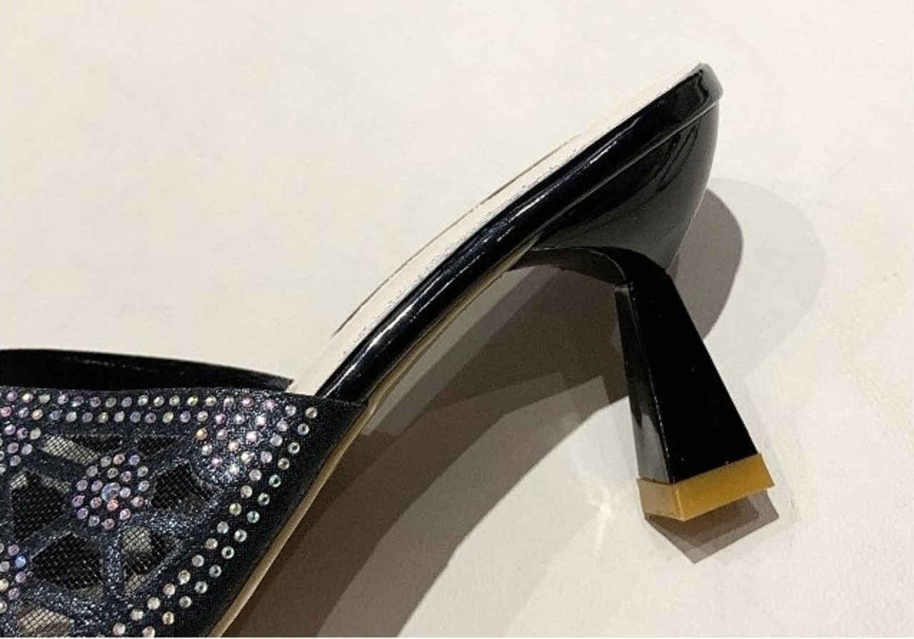 アッパーのキラキラ感がおしゃれなミドルヒールミュール。