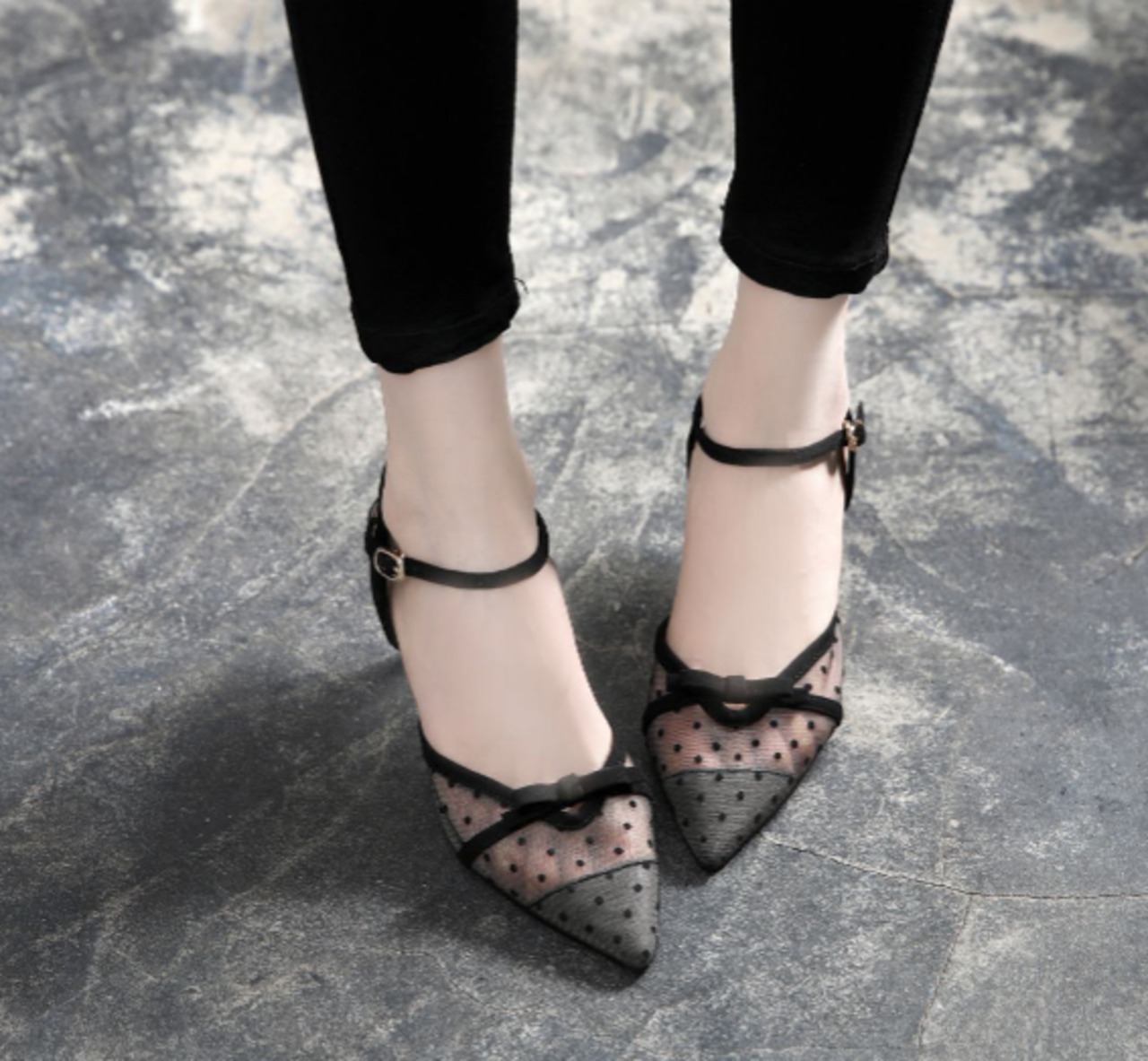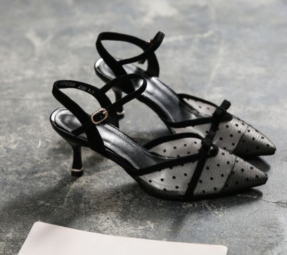 サンダル レディースサンダル ヒールサンダル ミュールサンダル ポインテッドトゥ アンクルストラップ メッシュ かわいい 大人可愛い きれいめ おしゃれ 女っぽ こなれ感 ドット柄 春 夏 二次会 10代 20代 30代 レディース レストラン デイリー 普段使い 22.0cm 22.5cm 23.0cm 23.5cm 24.0cm 24.5cm 25.0cm 黒 ブラック 大人カラー