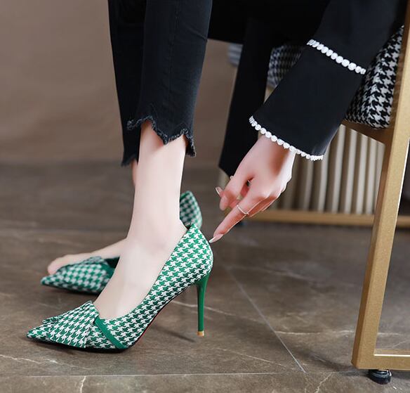 パンプス レディースパンプス ポインテッドトゥパンプス 9cmヒール ピンヒール ポインテッドトゥ 大人可愛い 大人 上品 おしゃれ お洒落 エレガント 大人っぽい 個性的 セクシー 主役級 存在感 千鳥格子 春 夏 秋 冬 オールシーズン 10代 20代 30代 レディース レストラン 普段使い 高見え 22.0cm 22.5cm 23.0cm 23.5cm 24.0cm 24.5cm ブラック グリーン バイカラー