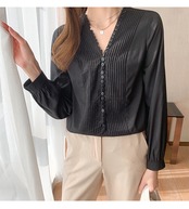 トップス シャツ ブラウス 白シャツ 白トップス 袖あり 長袖 Vネック 襟なし プリーツ シフォン ボタン タック かわいい 大人可愛い きれいめ シンプル カジュアル 大人 上品 おしゃれ お洒落 レトロ 大人女子 こなれ感 キュート ガーリー エレガント とろみ感 抜け感 フェミニン ロマンチック 無地 春 夏 秋 冬 オールシーズン シーズンレス レディース 女性用 学生 通学 デート お出かけ 着回し 普段使い モテ 体系カバー プレゼント ギフト プチプラ 安い