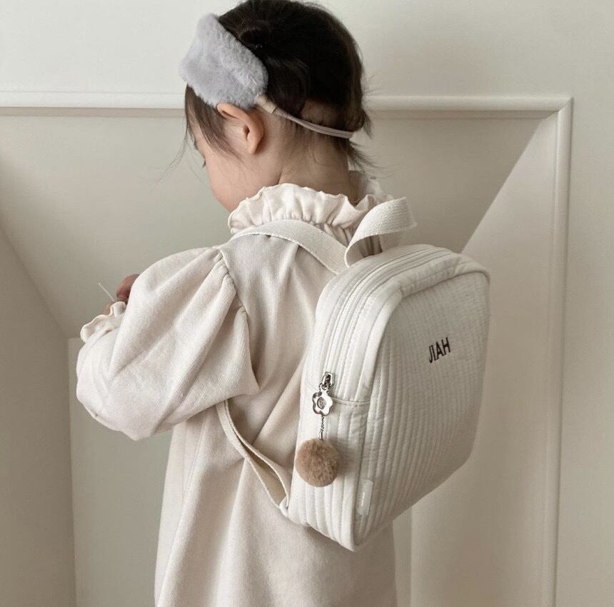【子ども】かわいいキッズリュック 名入れ 文字入れ 可能 バック シンプル ナチュラル ホワイト アイボリーホワイト