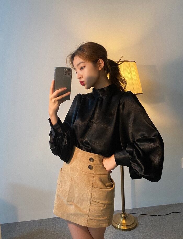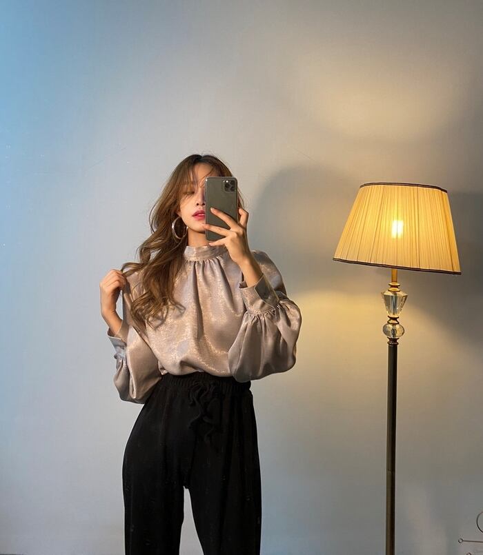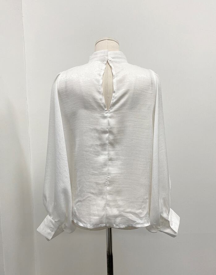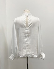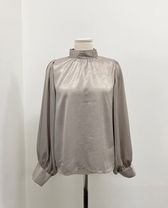 ボリューム感のあるバルーンスリーブが可愛い、サテンブラウスです。