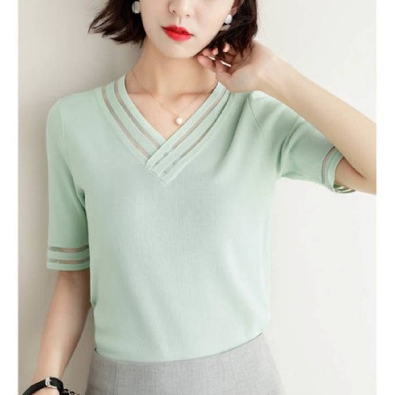 トップス Tシャツ カットソー 白トップス 袖あり 半袖 Vネック 透け感 シースルー かわいい 大人可愛い きれいめ シンプル カジュアル 大人 上品 おしゃれ お洒落 大人女子 こなれ感 キュート ガーリー エレガント 抜け感 フェミニン 無地 ライン 春 夏 10代 20代 30代 レディース 女性用 学生 通学 デート お出かけ 女子会 休日 着回し 普段使い コーデ スタイル 楽ちん モテ プレゼント ギフト 新作 定番 白 ホワイト 緑 グリーン