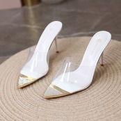 透明感のあるアッパーとつま先のキラキラがおしゃれなヒールサンダル。