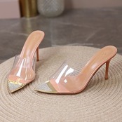 シューズ サンダル ミュール キラキラ オープントゥ ハイヒール 細ヒール クリア PU 靴 大人可愛い 大人女子 おしゃれ お洒落 エレガント 美脚 脚長効果 きれいめ カジュアル お出かけ 普段使い デイリー デート リゾート レジャー レディース