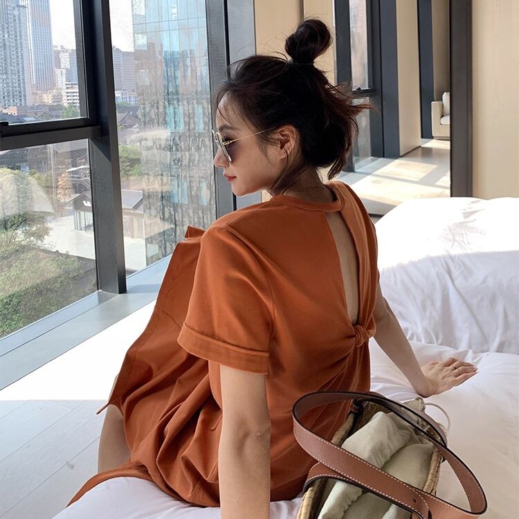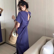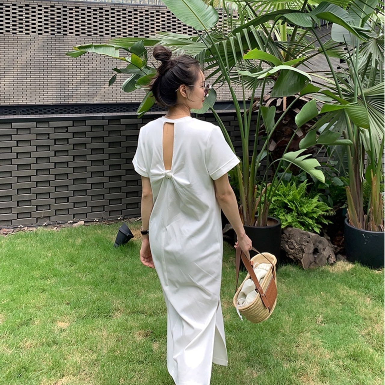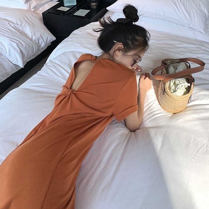 ワンピース タイトスカート ロング丈 半袖 ラウンドネック ストレート Aライン リボン バックリボン バックシャン バックオープン かわいい 大人可愛い きれいめ 大人 上品 お洒落 レトロ ラフ ラブリー キュート ガーリー セクシー エレガント 無地 春 夏 謝恩会 結婚式 二次会 10代 20代 レディース オフィス デート お出かけ 女子会 休日 パーティー イベント 旅行 海 プール 普段使い 重ね着 お揃い 双子 韓国系 ファッション モテ 体系カバー