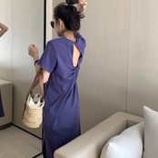バックオープンと結び目風のバックシャンデザインがおしゃれなロングワンピースです。