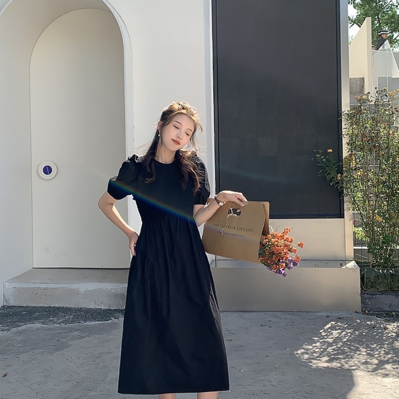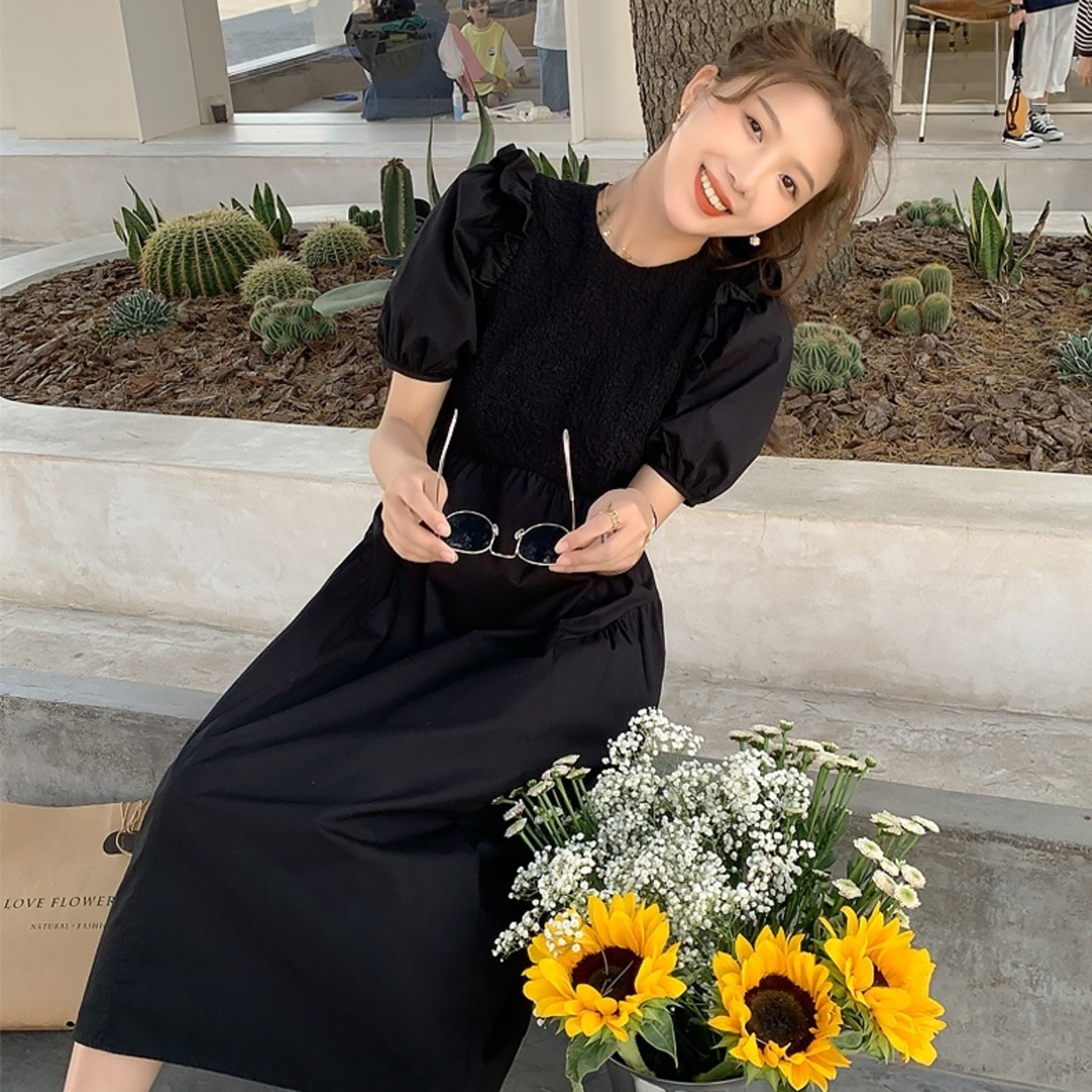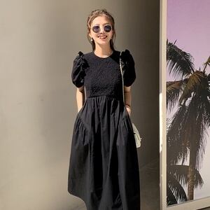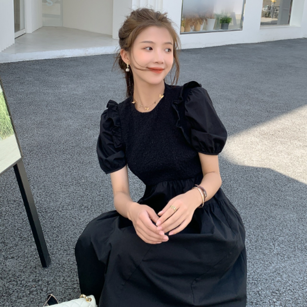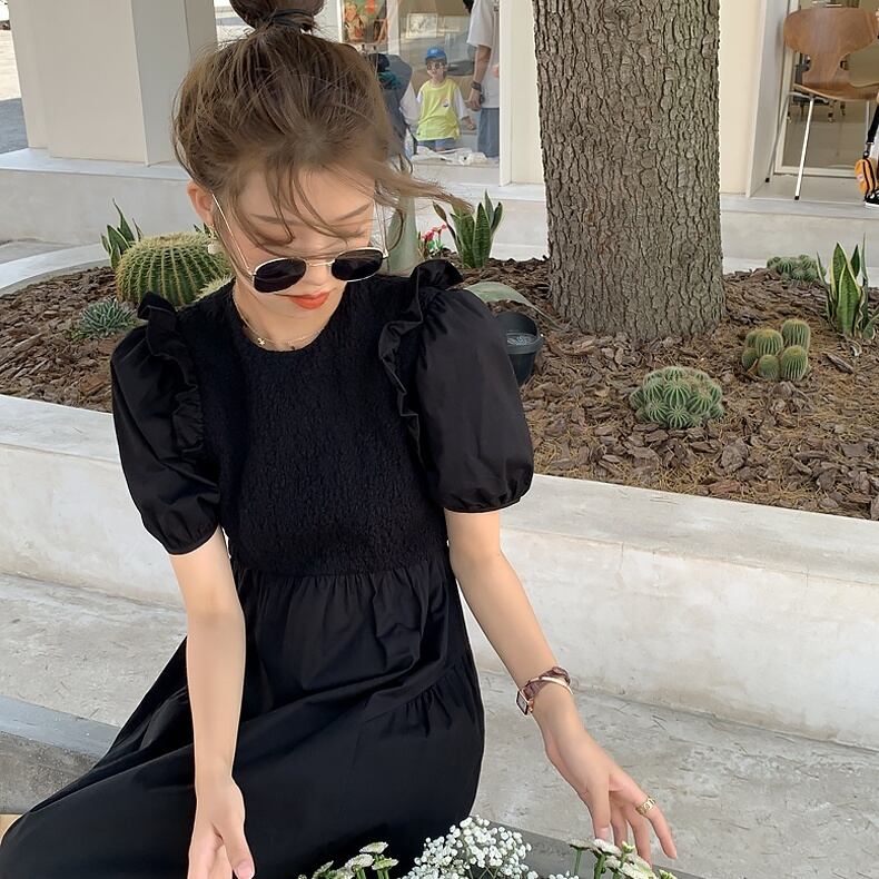 ワンピース フレアワンピース ワンピドレス ロング丈 半袖 パフスリーブ ラウンドネック フレア Aライン フリル ウエストマーク 大人可愛い きれいめ シンプル 大人 上品 お洒落 レトロ 大人可愛い ラブリー キュート ガーリー エレガント フォーマル 無地 春 夏 二次会 披露宴 10代 20代 30代 レディース デート お出かけ パーティー イベント 韓国 韓国系 ファッション モテ 体系カバー 美脚 脚長 インスタ映え S M L XL 黒 くすみカラー バイカラー モノトーン