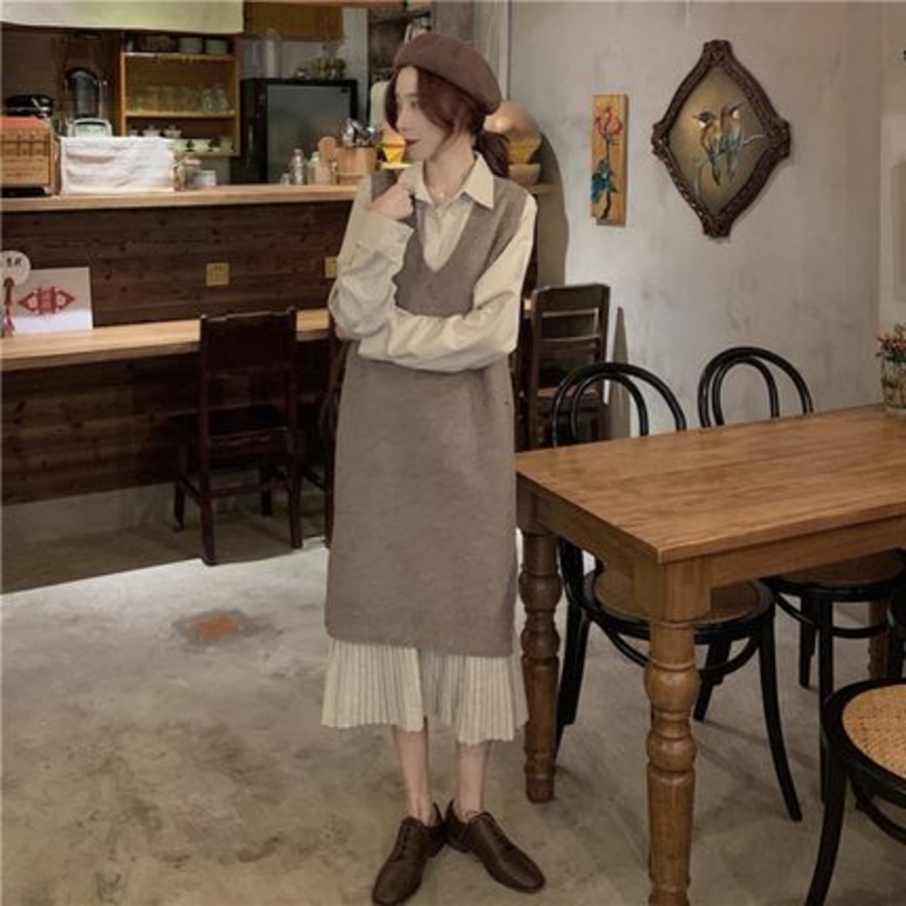 ワンピース セットアップ ベスト フレアワンピース ミモレ ミモレ丈 袖あり 長袖 Vネック 襟付き マーメイド 2点セット ツーピース 大人可愛い きれいめ カジュアル 大人 上品 おしゃれ お洒落 レトロ 大人女子 こなれ感 ラフ ラブリー キュート ガーリー ルーズ 春 秋 冬 2022 2023 10代 20代 30代 40代 レディース 女性用 キッズ 女の子 通学 デート お出かけ 休日 普段使い 重ね着 M L XL 2XL 3XL 4XL 青 ブルー ベージュ