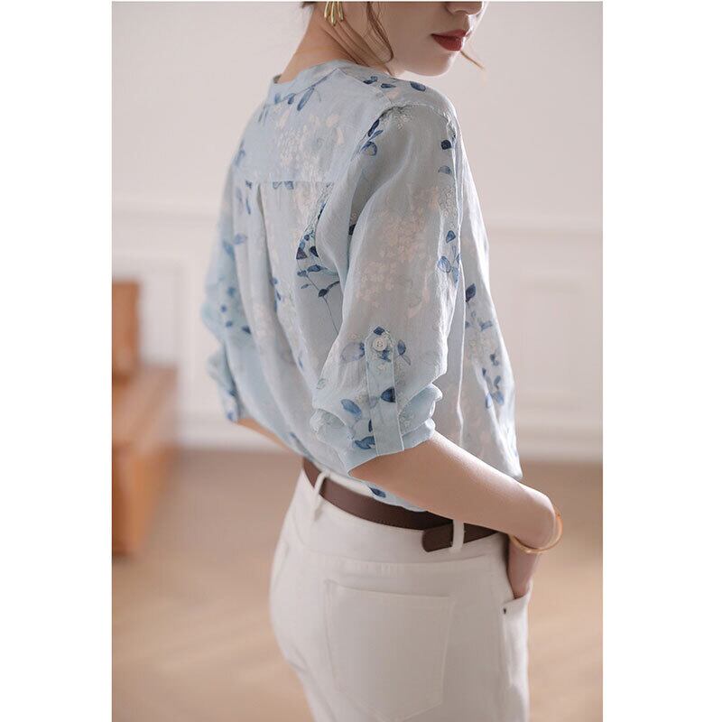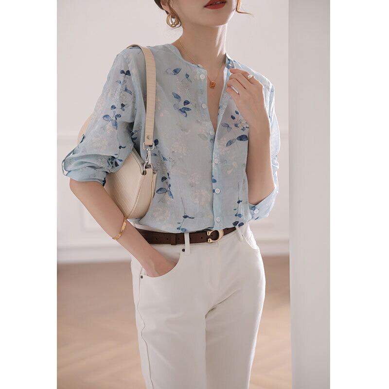 トップス シャツ ブラウス 袖あり 7分袖 七分袖 Vネック クルーネック 襟なし 前開き 透け感 シースルー かわいい 大人可愛い きれいめ シンプル カジュアル 大人 上品 おしゃれ お洒落 大人女子 こなれ感 キュート ガーリー エレガント 抜け感 フェミニン 柄 花柄 フラワー リーフ柄 春 夏 レディース 女性用 デート お出かけ 休日 着回し 普段使い 重ね着 モテ プレゼント ギフト プチプラ 安い ゆったり ゆる