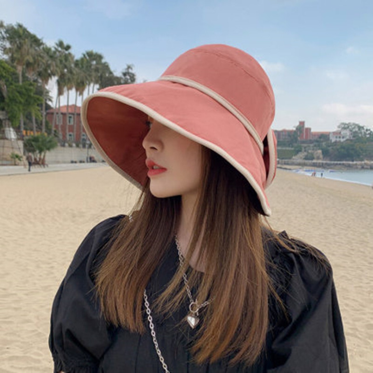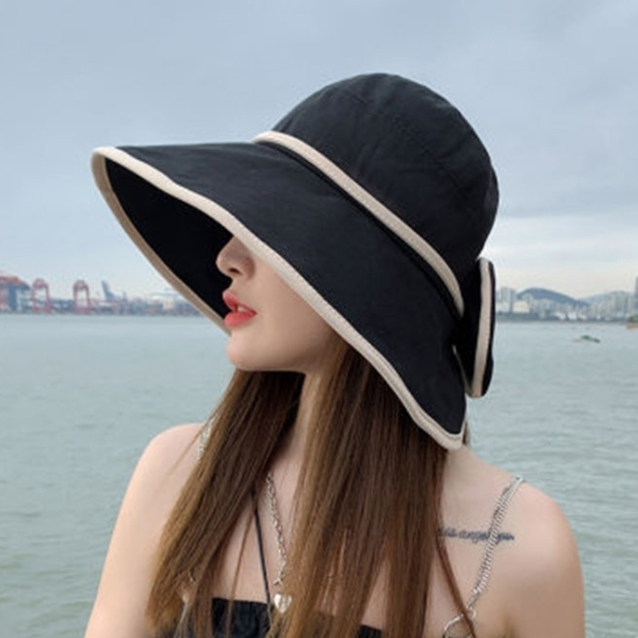 帽子 ハット つば広 日よけ 紫外線対策 バイカラー リボン おしゃれ エレガント 上品 大人可愛い 大人女子 きれいめ お出かけ リゾート レジャー ビーチ 海 春 夏 レディース