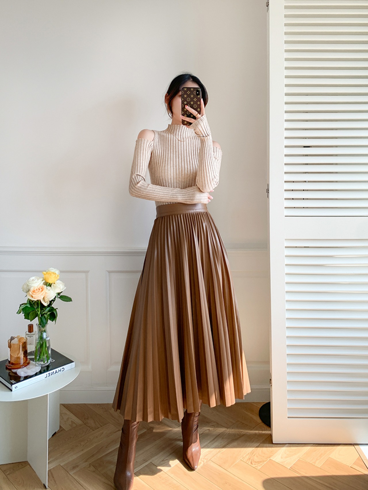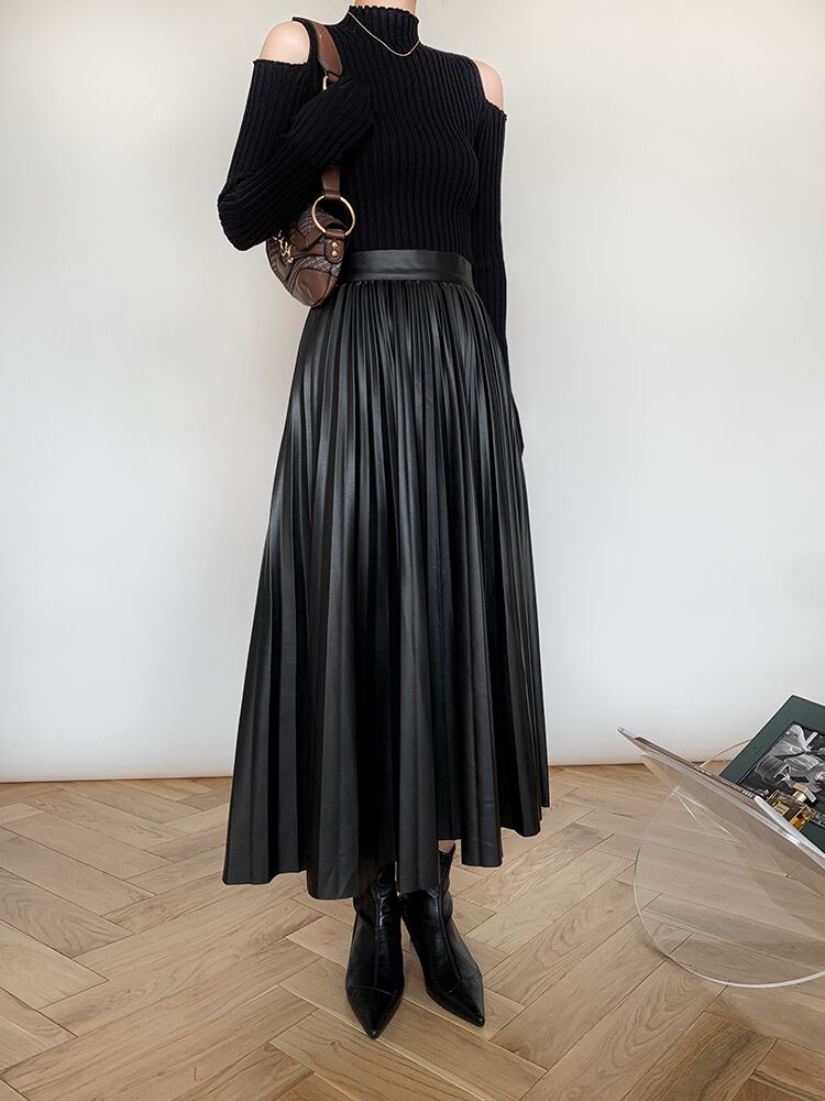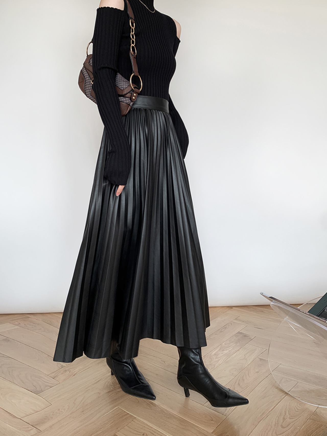 レザーが高見えで大人かっこいいプリーツスカートです。