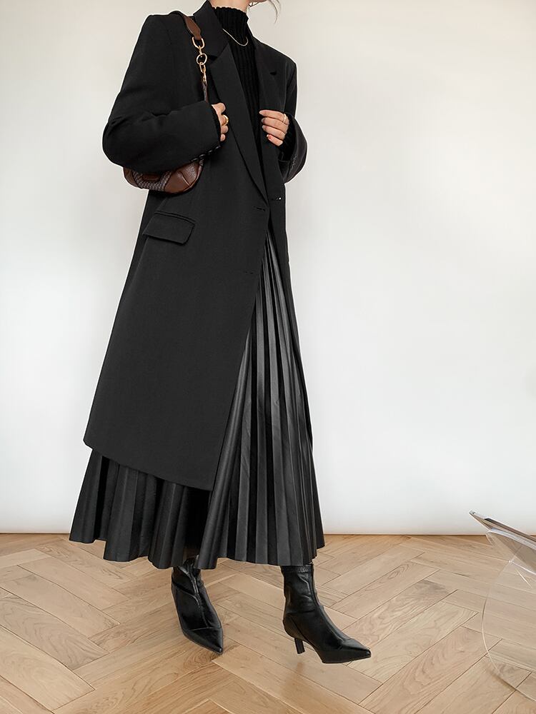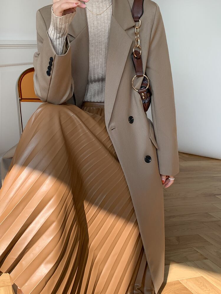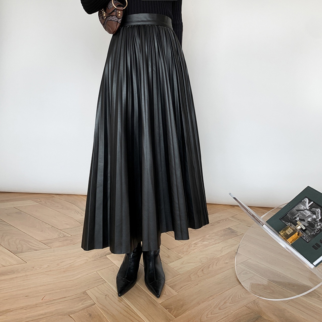 スカート プリーツスカート ミモレ丈 ストレート プリーツ レザー シンプル 大人 上品 おしゃれ かっこいい 大人女子 こなれ感 個性的 クール モード系 エレガント 主役級 無地 秋 冬 20代 30代 40代 レディース 通勤 デート お出かけ 女子会 休日 リゾート 旅行 レストラン 普段使い 体系カバー S M L 黒 ブラック 茶色 ブラウン