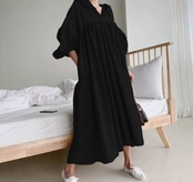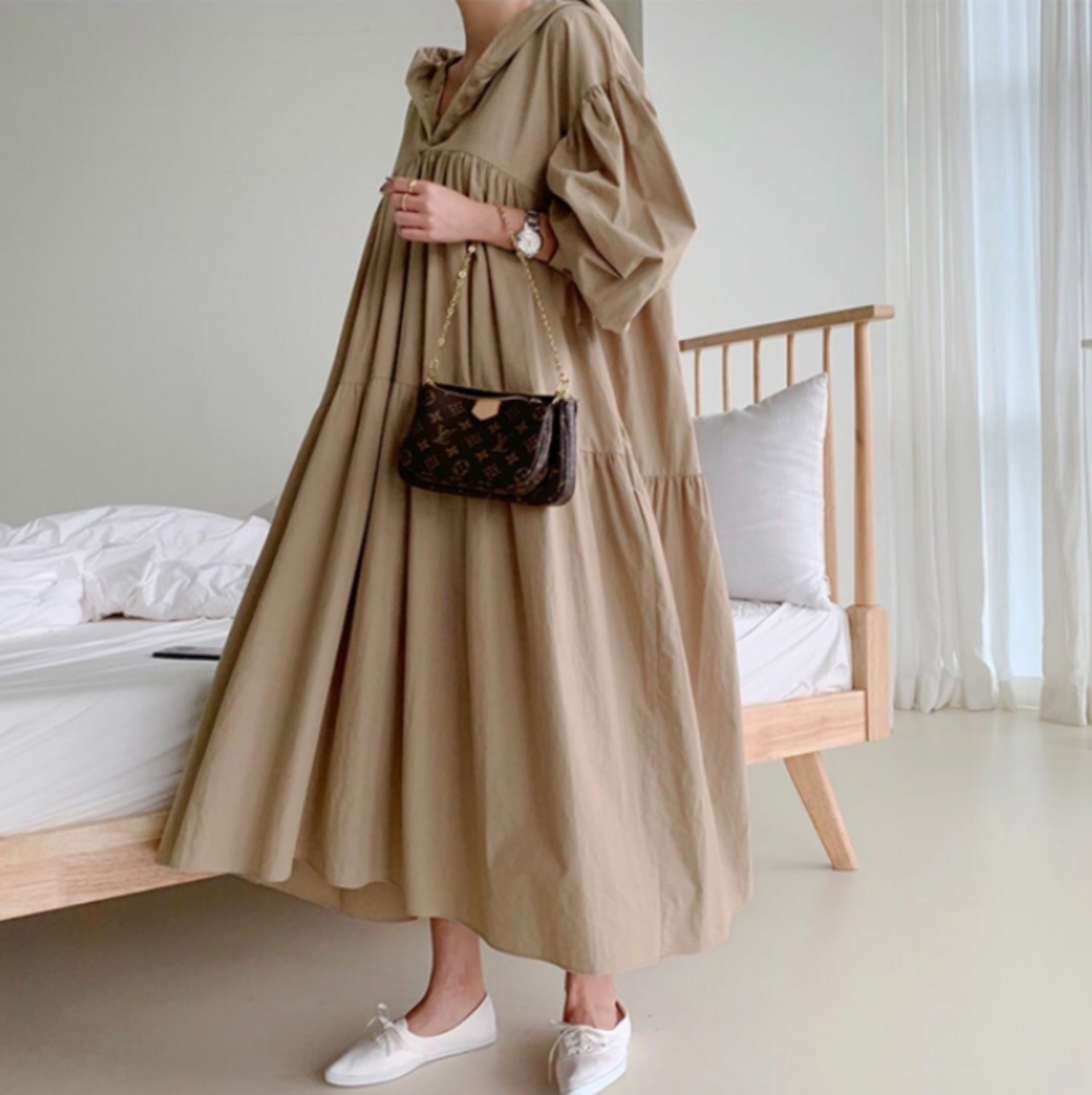 ワンピース シャツワンピース ロング ロング丈 袖あり ボリューム袖 Vネック ワイド ふわふわ フード付き かわいい 大人可愛い シンプル カジュアル 大人女子 ラフ 抜け感 無地 春 秋 10代 20代 30代 40代 レディース 女性用 デート お出かけ 女子会 休日 アウトドア リゾート 旅行 海 高原 普段使い 楽ちん 体系カバー フリーサイズ ゆったり 黒 ブラック 茶色 ブラウン