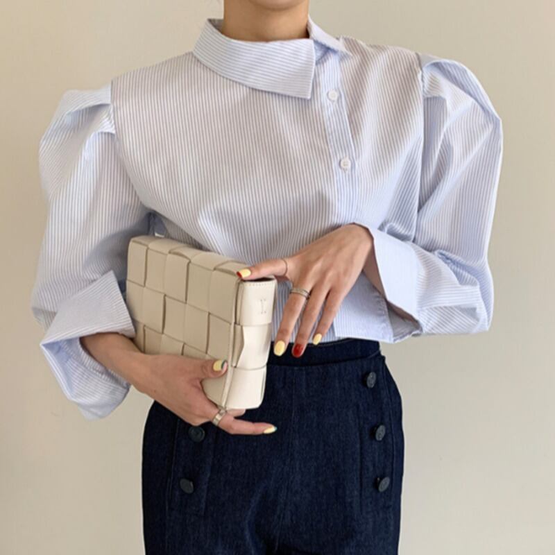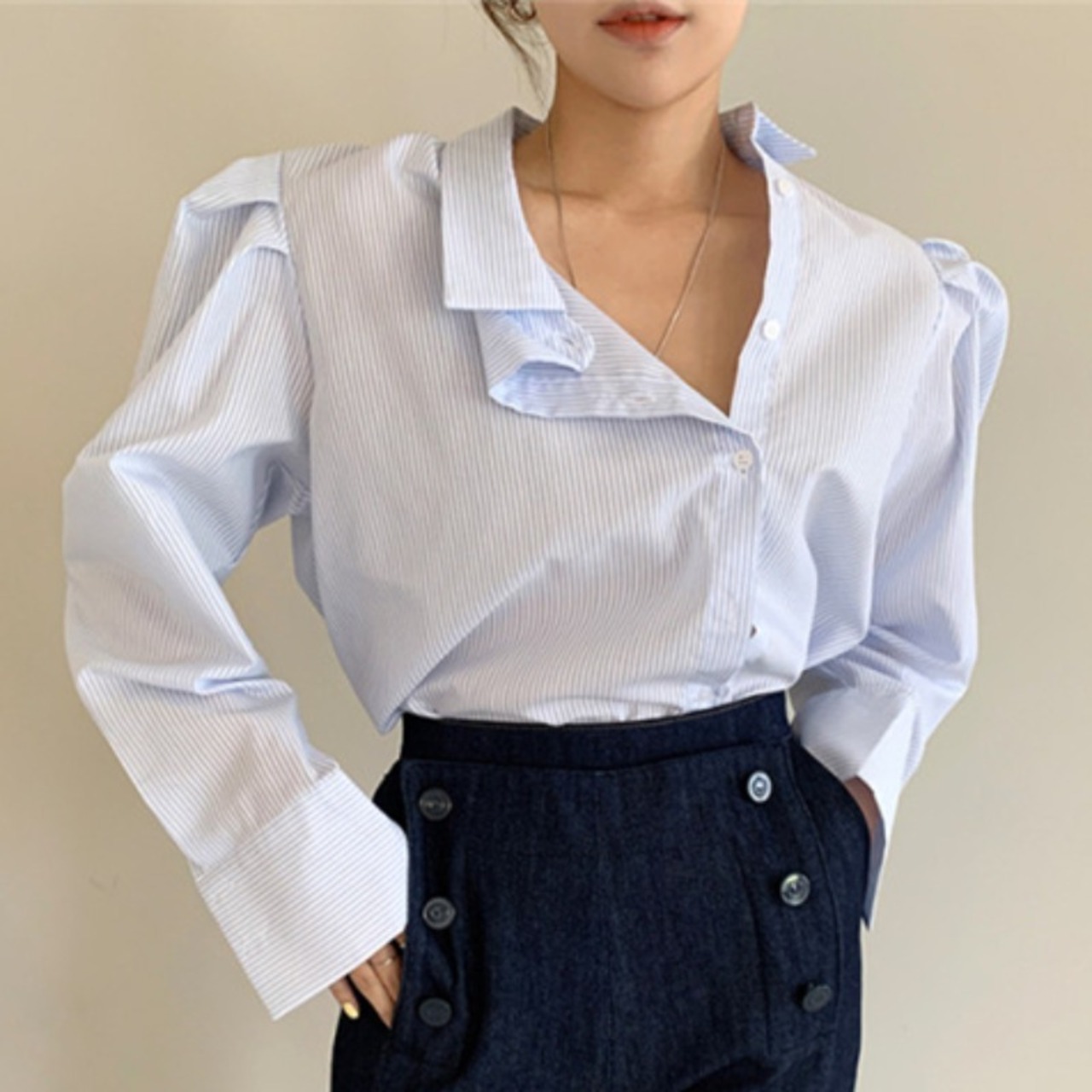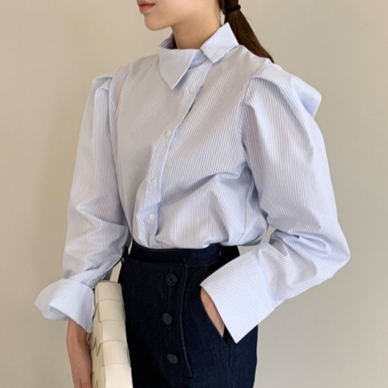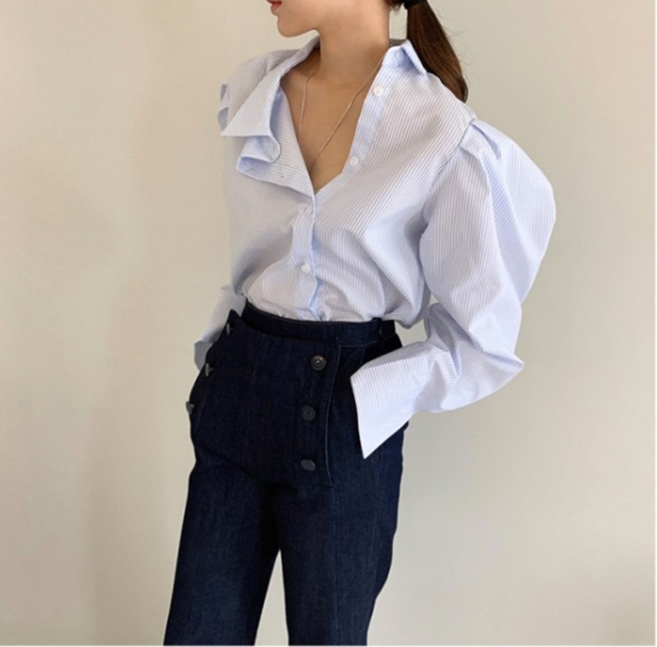 トップス シャツ ブラウス カットソー 袖あり 長袖 ボリューム袖 萌袖 襟付き フレア ワイド 前開き 綿 かわいい 大人可愛い きれいめ シンプル 大人 上品 おしゃれ かっこいい 大人女子 こなれ感 メンズライク ガーリー ルーズ モード系 セクシー エレガント 主役級 抜け感 無地 ストライプ シマ 春 夏 秋 シーズンレス 20代 30代 40代 レディース 女性用 ママ ビジネス OL 学生 デート お出かけ 女子会 休日 イベント 普段使い ファッション スタイル モテ サイズ