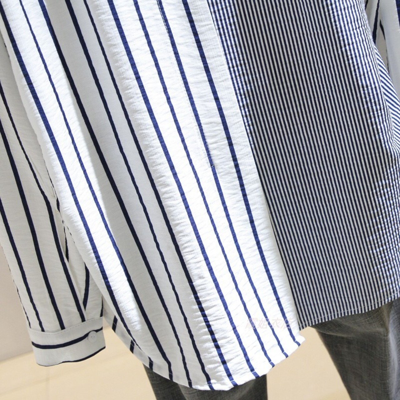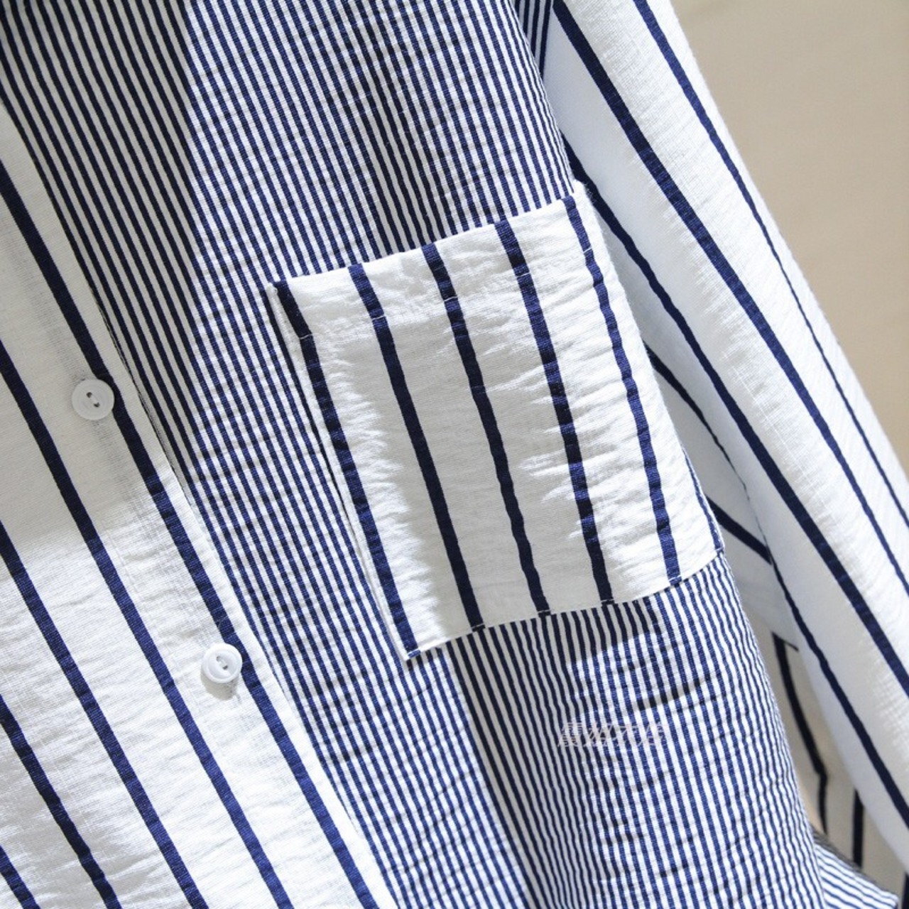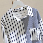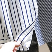 太さの違うストライプ柄がお洒落なブロッキングシャツです。