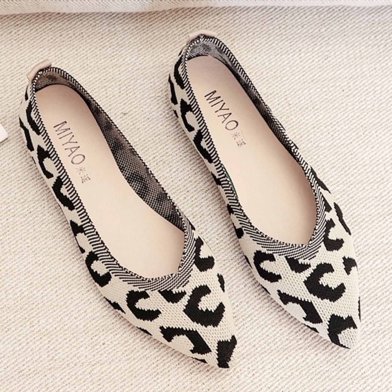 レディースシューズ パンプス ヒョウ柄 アニマル柄 ポインテッドトゥ ローヒール フラットシューズ ぺたんこ靴 大人可愛い 大人女子 キュート おしゃれ お洒落 歩きやすい 疲れにくい こなれ感 カジュアル お出かけ デート カフェ ランチ レジャー 休日