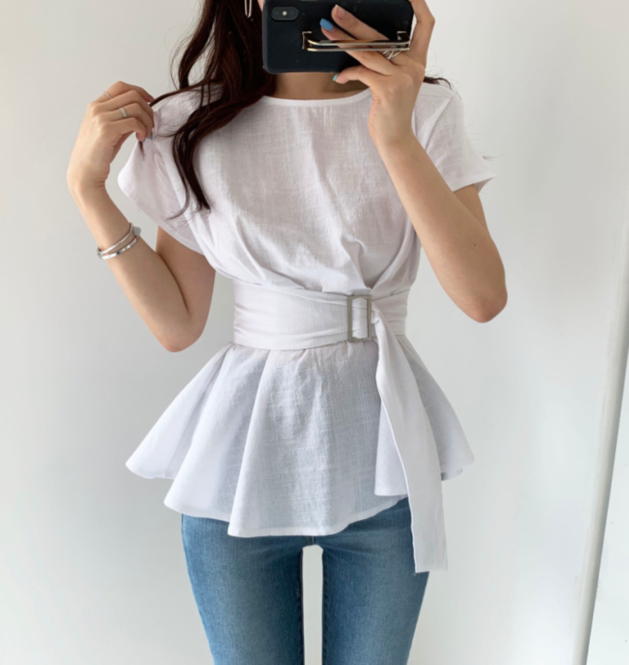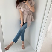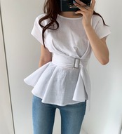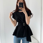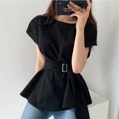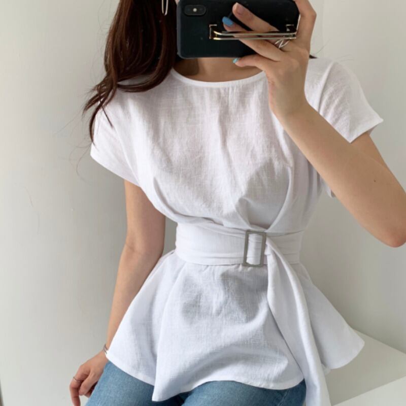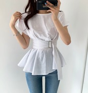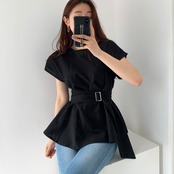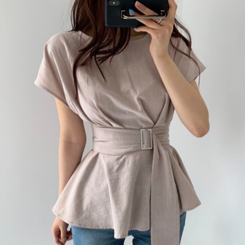 トップス ブラウス シャツ ペプラム チュニックブラウス プルオーバー ラウンドネック ウエストマーク バックル ベルト 半袖 フレンチスリーブ ふんわり 無地 フレア 大人女子 大人可愛い フェミニン オシャレ おしゃれ お洒落 きれいめ カジュアル お出かけ デート デイリー ランチ 女子会 リゾート 旅行 春 夏 10代 20代 30代 40代 レディース