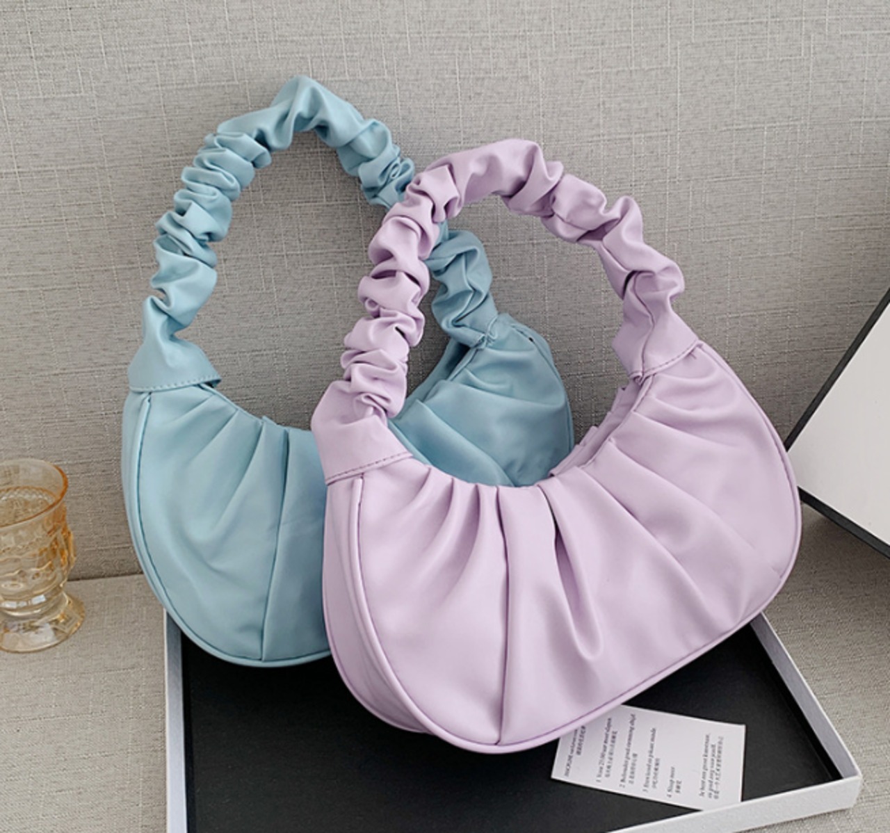 バッグ レディースバッグ ハンドバッグ 手持ちバッグ プリーツ U字型 PU ポリエステル かわいい シンプル カジュアル 無地 10代 20代 30代 レディース お出かけ 休日 デイリー 春 夏 小さめ 白 ホワイト 黒 ブラック 青 ブルー 紫 パープル 茶色 ブラウン