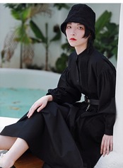 大人かわいいシルエットですが黒のシンプルな色と合わせるとクールで個性的な印象を与えてくれます。