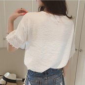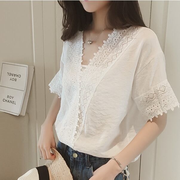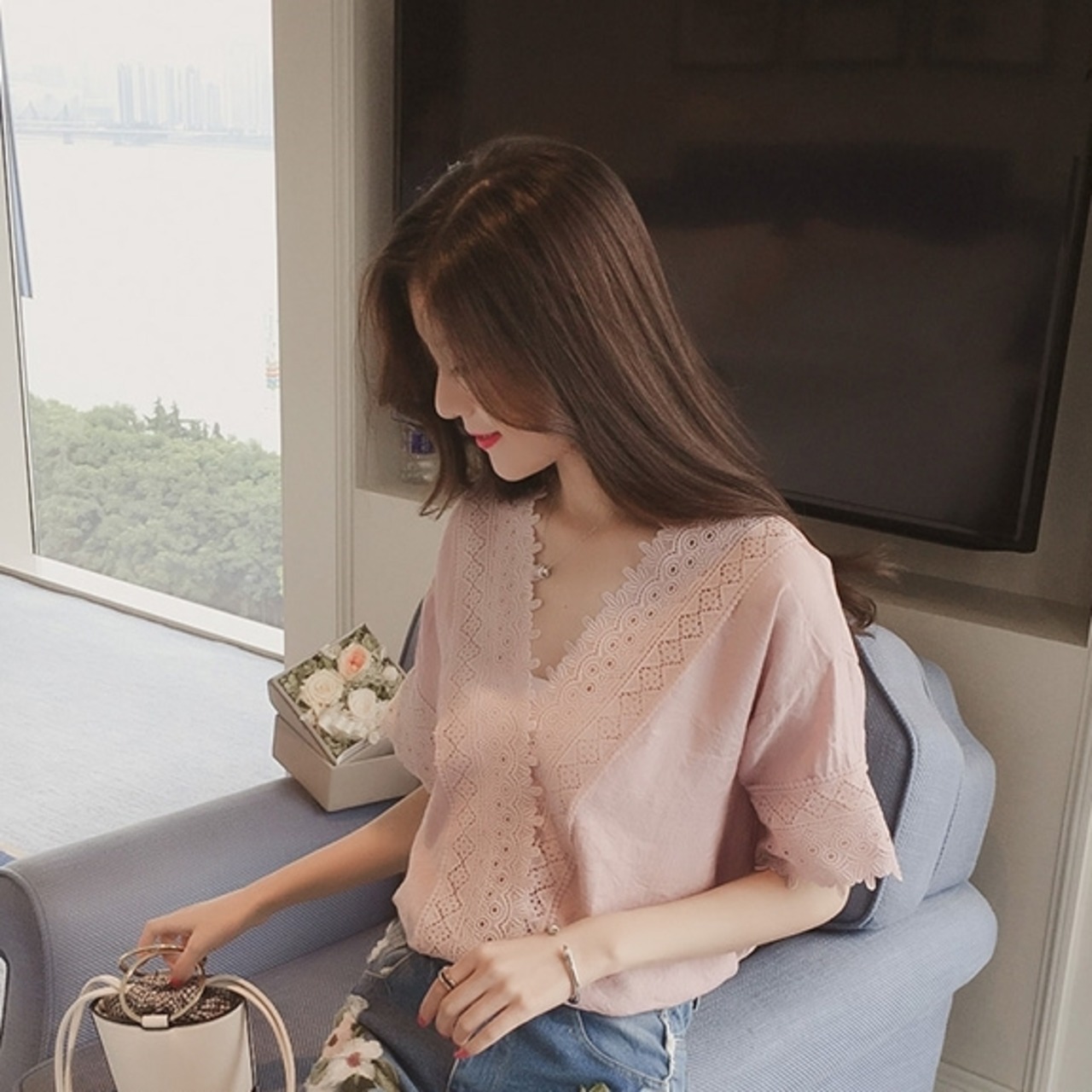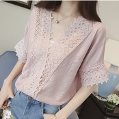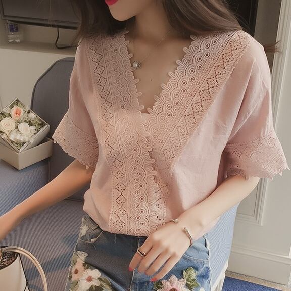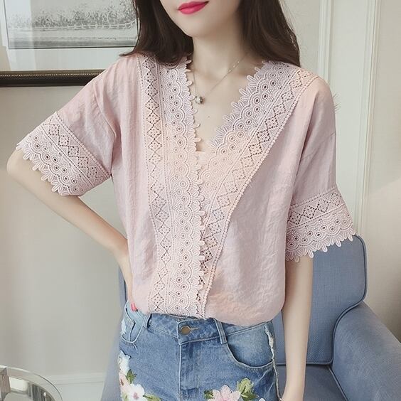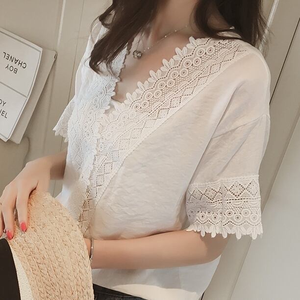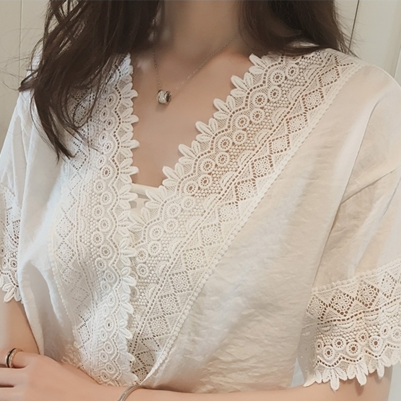 トップス ブラウス シャツ レース Vネック 半袖 透け感 ドロップショルダー ゆったり 大人女子 大人可愛い エレガント フェミニン オシャレ おしゃれ お洒落 きれいめ カジュアル お出かけ デート デイリー ランチ 女子会 リゾート 旅行 春 夏 20代 30代 40代 大きいサイズ レディース