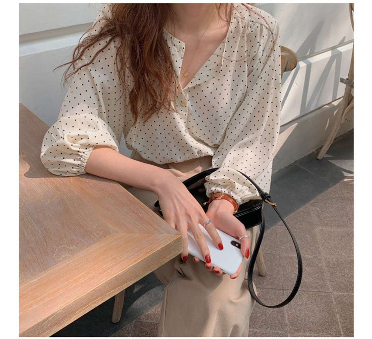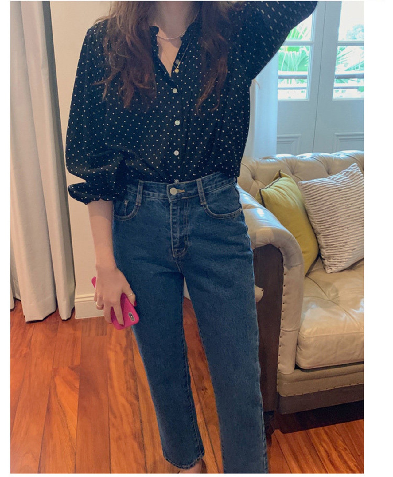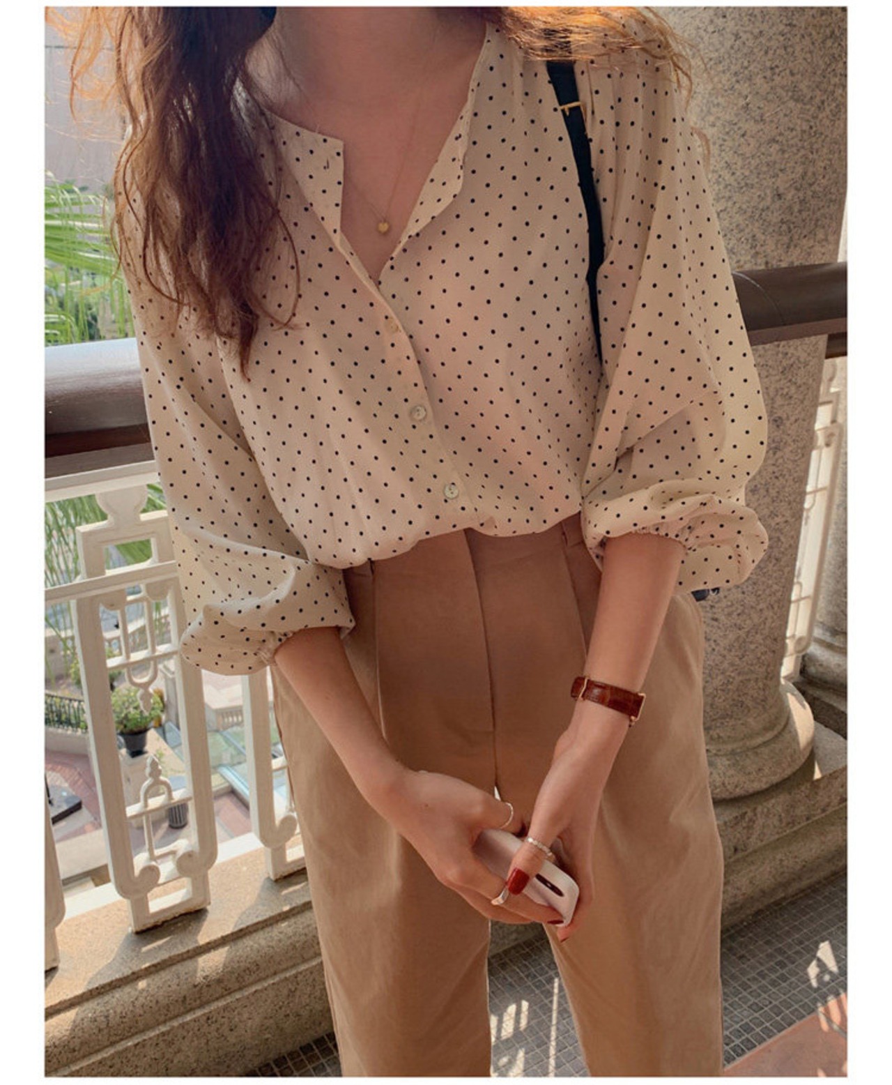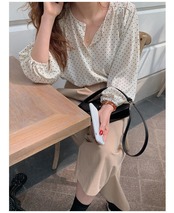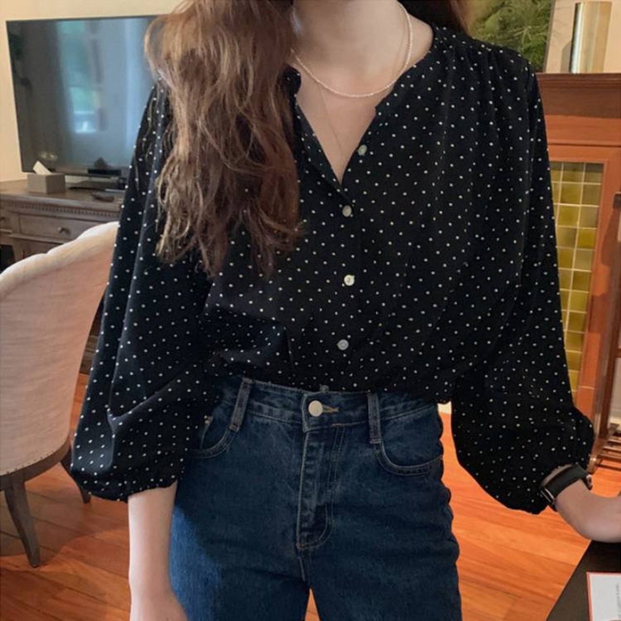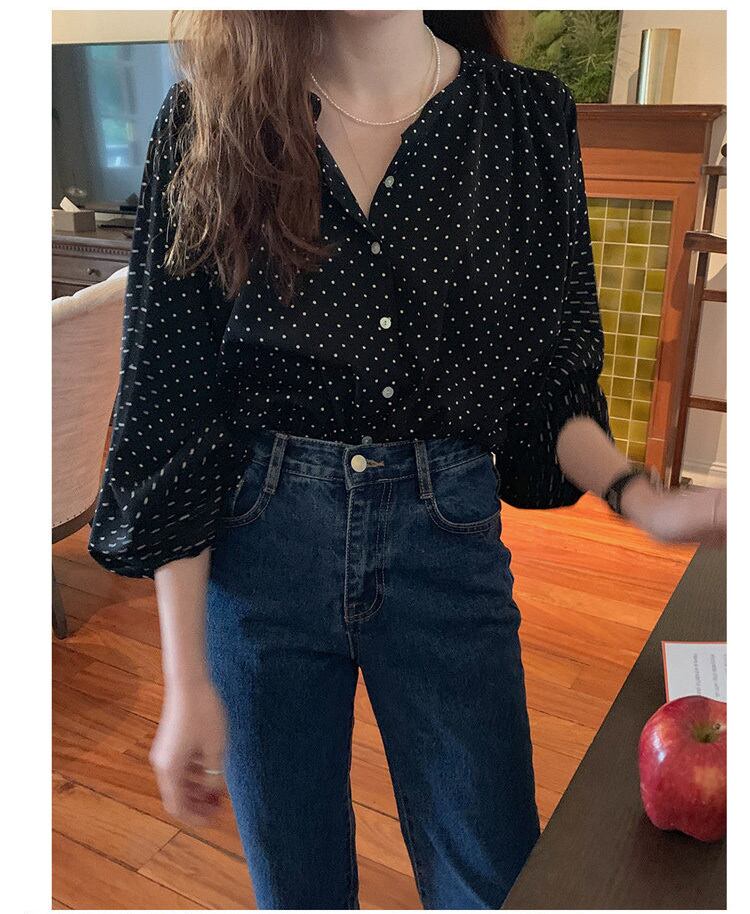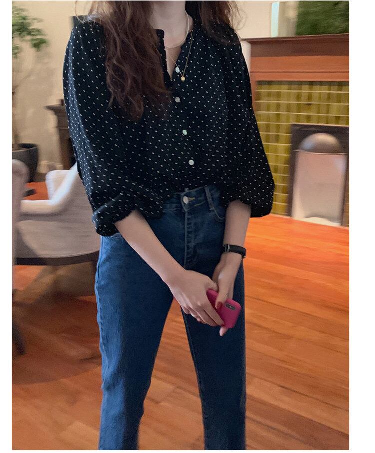 トップス シャツ ブラウス 袖あり 7分袖 七分袖 ボリューム袖 パフスリーブ バルーンスリーブ ラウンドネック クルーネック 襟なし 前開き かわいい 大人可愛い きれいめ シンプル カジュアル 大人 上品 おしゃれ お洒落 大人女子 ラフ キュート ガーリー ルーズ エレガント 抜け感 フェミニン ロマンチック 柄 ドット柄 水玉 春 夏 秋 レディース 女性用 デート お出かけ 着回し 普段使い モテ 体系カバー プレゼント ギフト プチプラ 安い ゆったり ゆる