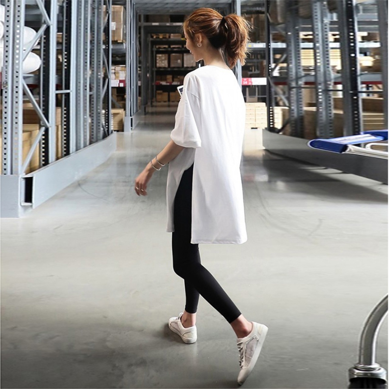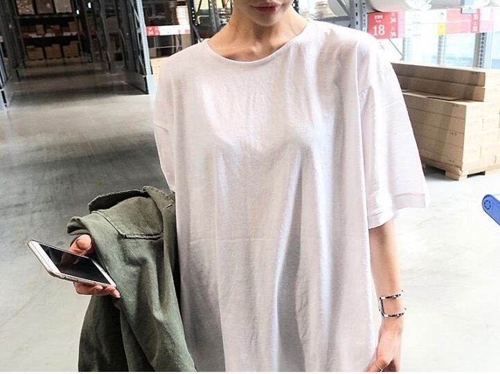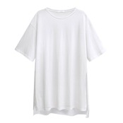 トップス Tシャツ カットソー 白シャツ 白トップス ビッグT 膝下 袖あり 半袖 ラウンドネック クルーネック 襟なし ワイド サイドスリット 伸縮性 綿 薄手 大人可愛い きれいめ シンプル カジュアル 大人 おしゃれ かっこいい ラフ メンズライク ボーイッシュ クール 抜け感 無地 春 夏 秋 オールシーズン シーズンレス レディース 女性用 ママ 学生 通学 デート お出かけ 公園デビュー 女子会 休日 ジム ヨガ 海 韓国 ファッション スタイル モテ サイズ 大きめ ビッグサイズ ゆったり