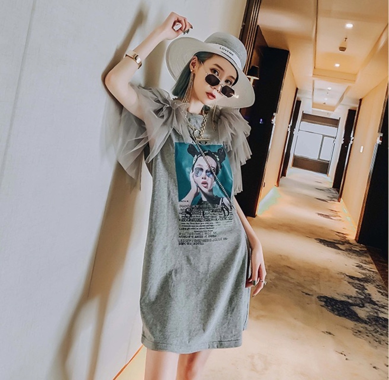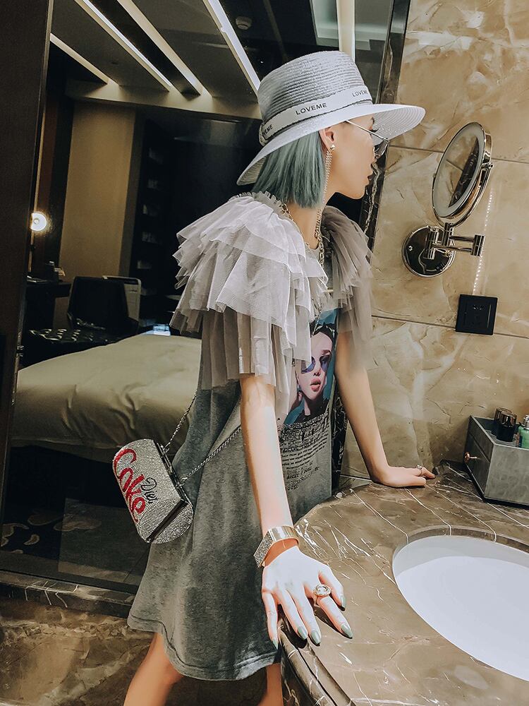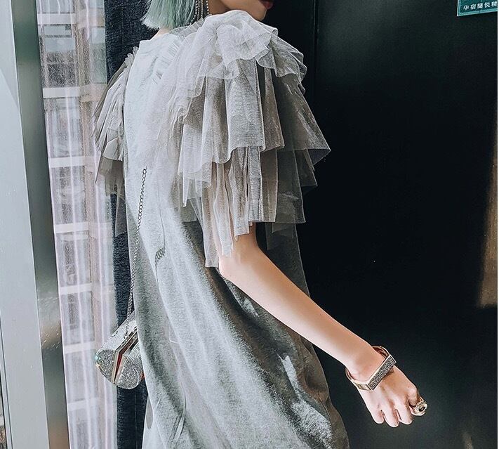 ワンピース Tシャツ カットソー ビッグT ワンピドレス 膝丈 ひざ丈 袖あり 半袖 ラウンドネック クルーネック 襟なし ストレート ワイド 切り替えデザイン プリーツ レース チュール 切り替えデザイン 異素材MIX 大人可愛い カジュアル おしゃれ かっこいい 大人可愛い 大人女子 ラフ マニッシュ 個性的 クール モード系 主役級 無地 柄 プリント 夏 レディース 女性 デート お出かけ 女子会 韓国 オルチャン ファッション スタイル インスタ映え サイズ ビッグサイズ ゆったり グレー