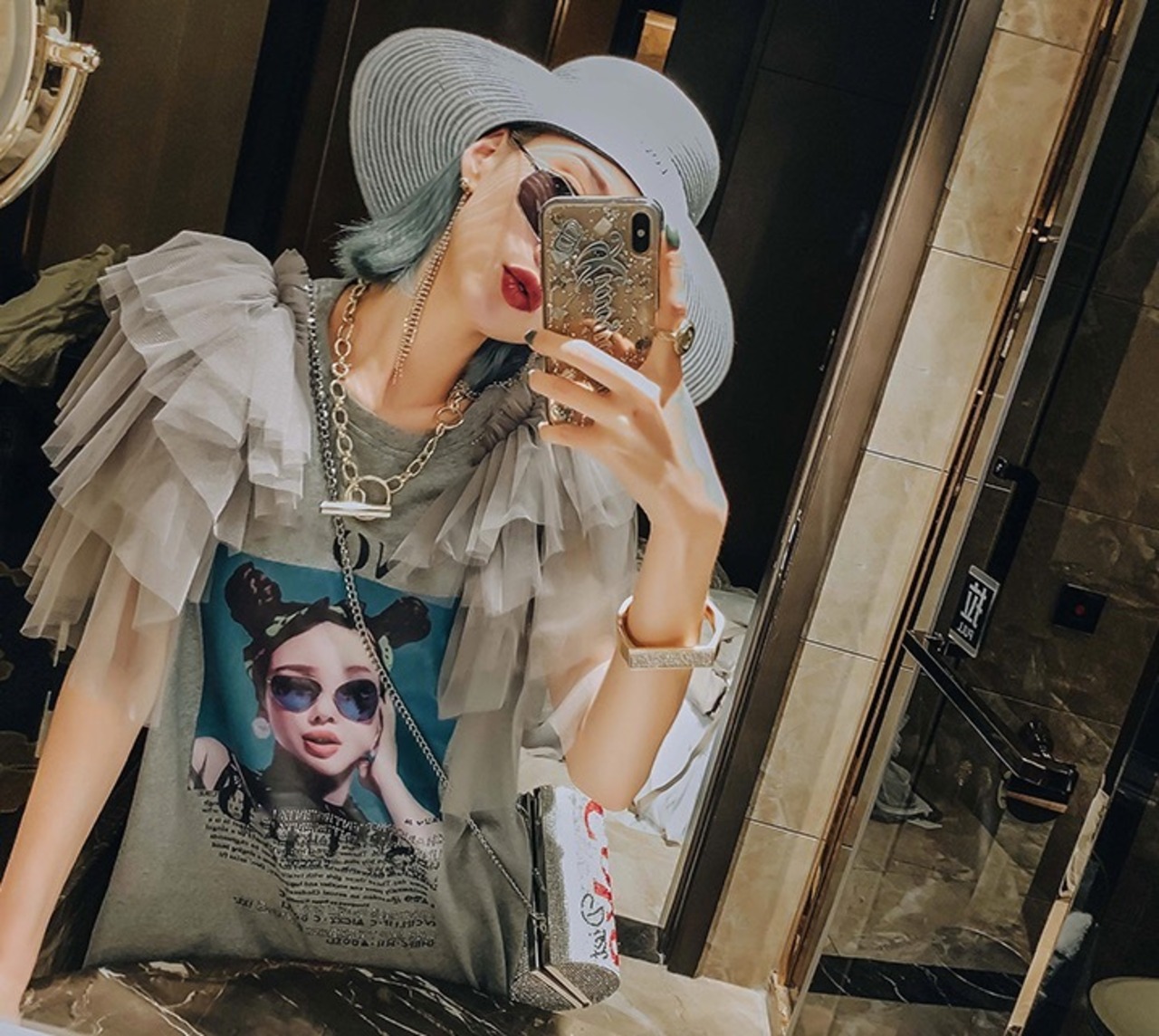 1枚で主役級のアイテム。袖のフリルで二の腕カバーも。