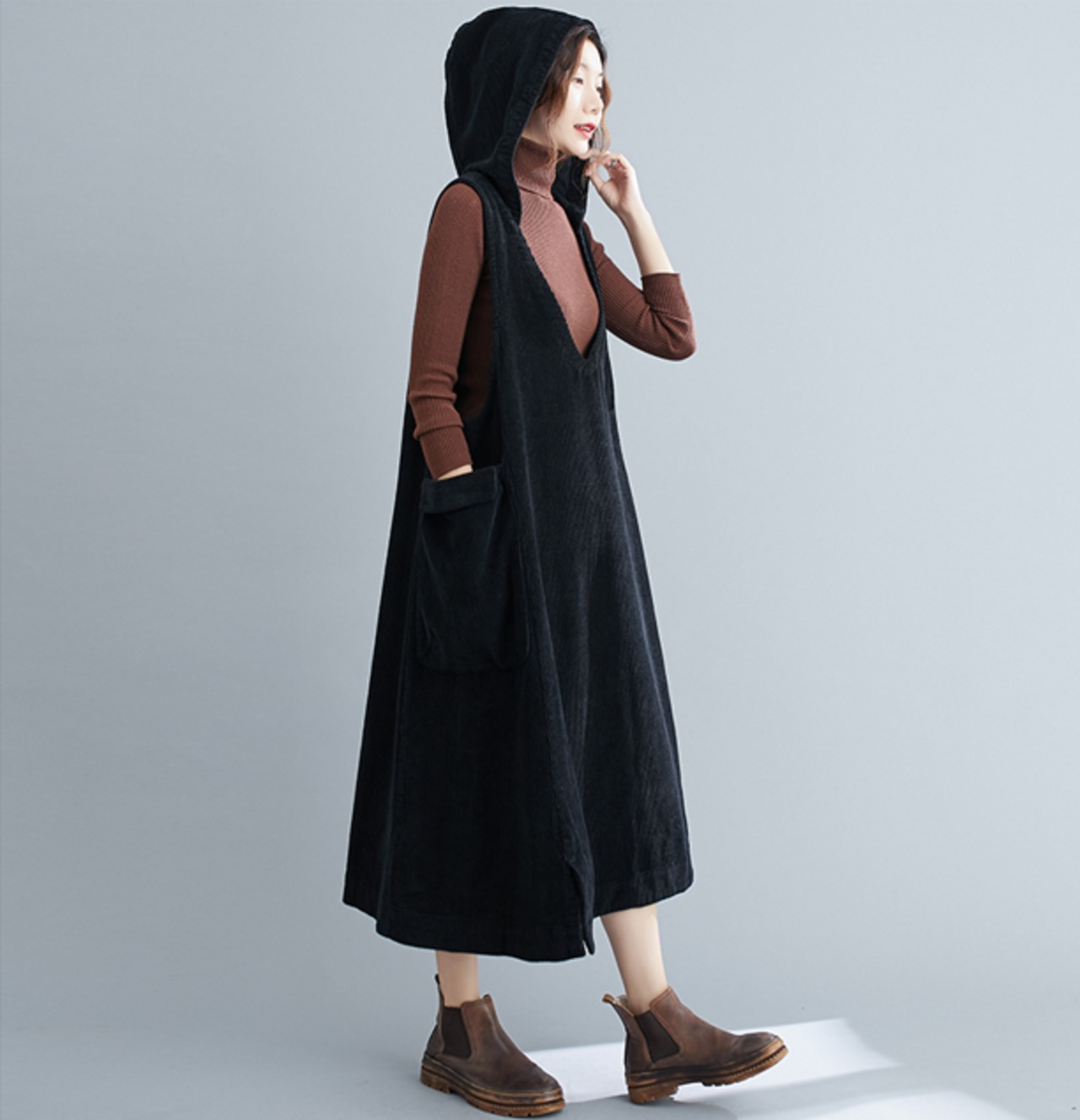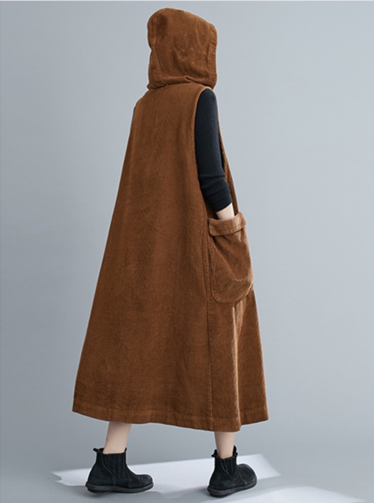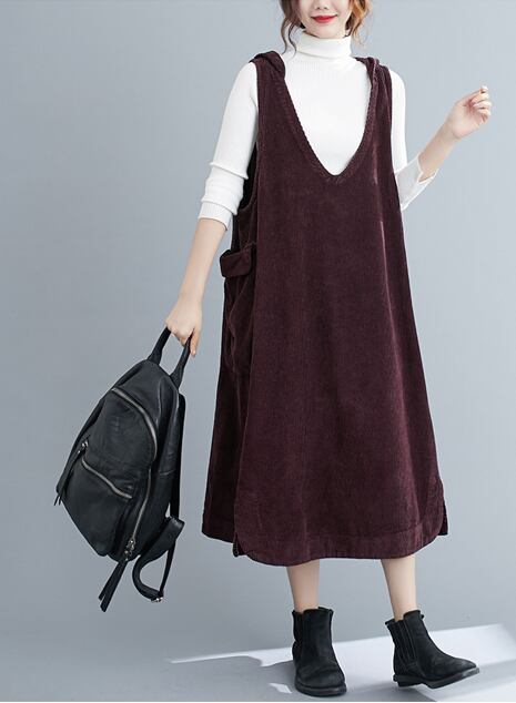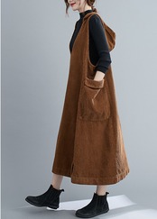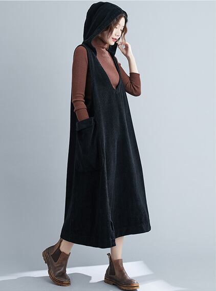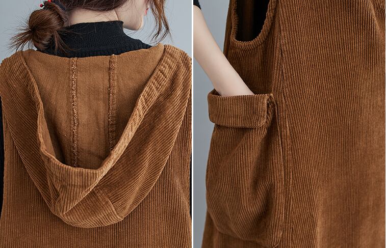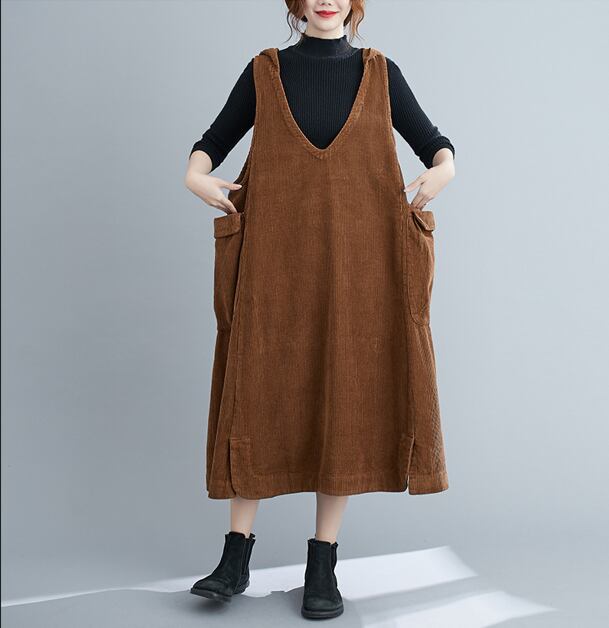 ワンピース パーカー フーディー ロングスカート ジャンパースカート ロング ロング丈 袖なし ノースリーブ Vネック 襟なし Aライン フード付き ポケット 厚手 コーデュロイ 大人可愛い シンプル カジュアル 大人 おしゃれ 大人可愛い 大人女子 ラフ キュート ガーリー ルーズ 無地 秋 冬 10代 20代 30代 40代 レディース 女性用 お出かけ 女子会 運動 旅行 普段使い 楽ちん 暖かい 定番 フリーサイズ 大きめ 色展開 ブラック ブラウン キャメル