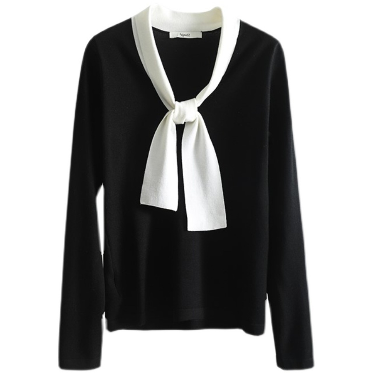 トップス ブラウス 袖あり 長袖 Vネック リボン かわいい 大人可愛い 大人 上品 大人女子 セクシー エレガント 主役級 フォーマル 無地 春 秋 冬 入学式 入園式 卒業式 卒園式 20代 30代 レディース OL 通勤 パーティー ホテル レストラン モテ S M L XL バイカラー モノトーン