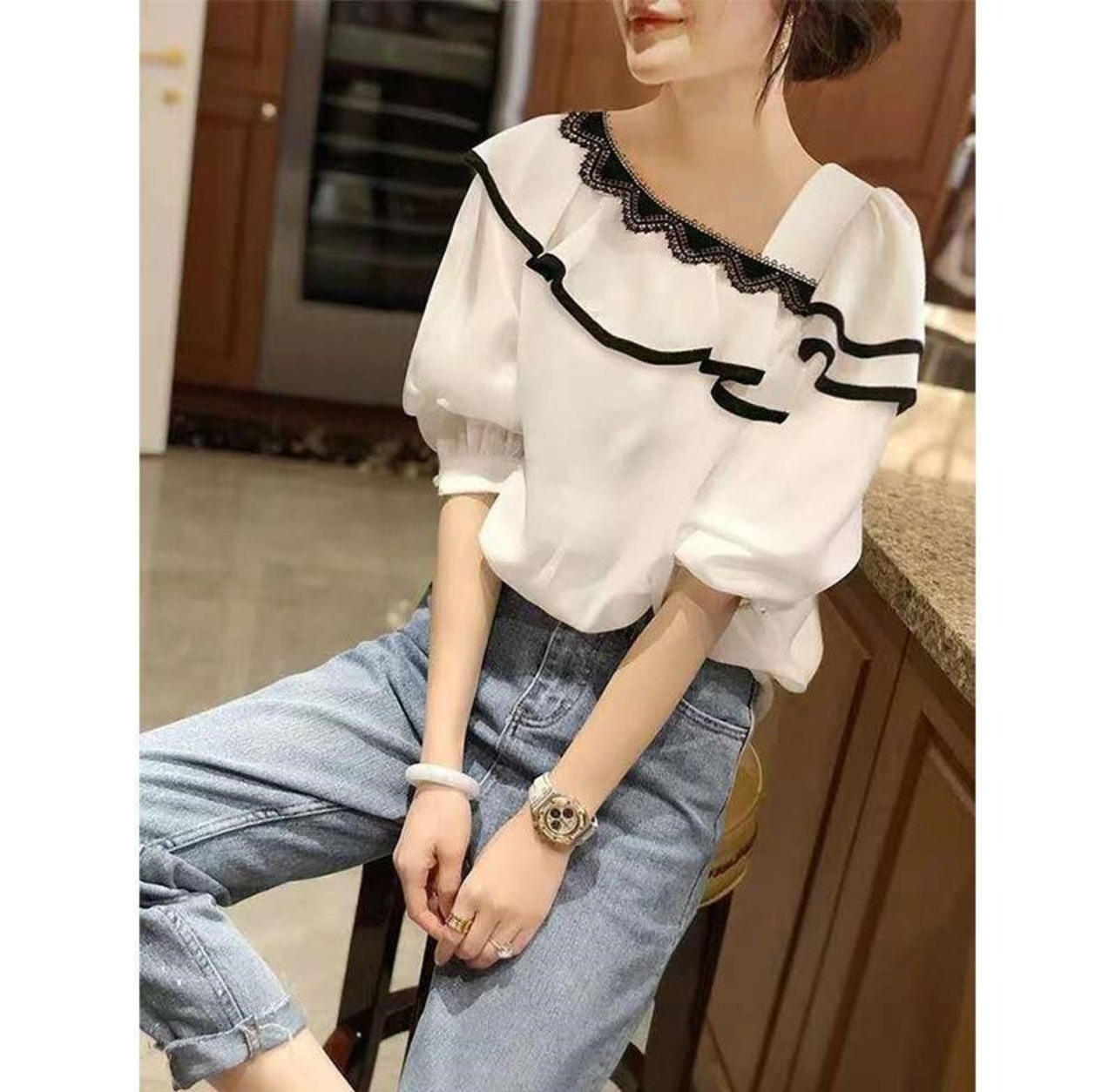 トップス シャツ ブラウス 白シャツ 白トップス 袖あり 5分袖 五分袖 長袖 ボリューム袖 パフスリーブ ドロップショルダー バルーンスリーブ Vネック アシンメトリーネック レース フリル かわいい 大人可愛い きれいめ シンプル カジュアル 大人 上品 おしゃれ お洒落 大人女子 ラブリー キュート ガーリー エレガント 抜け感 フェミニン ロマンチック クラシカル 春 夏 秋 冬 オールシーズン シーズンレス レディース 着回し 普段使い 体系カバー 大きいサイズ ビッグサイズ プラスサイズ