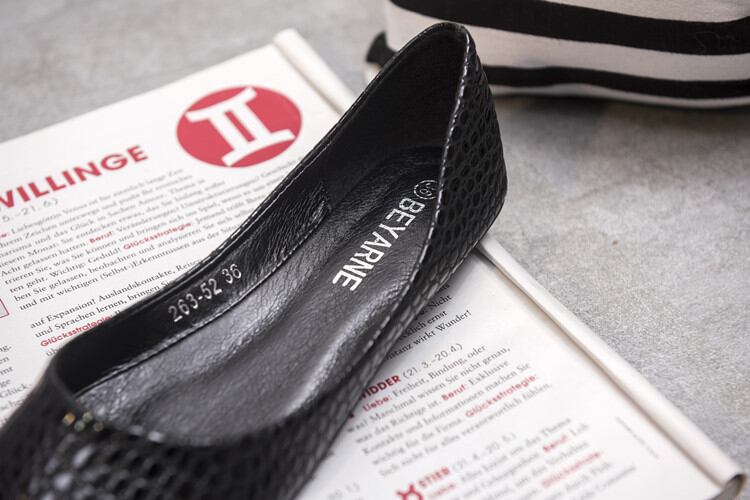 クロコ型押し素材がおしゃれなフラットパンプスです。