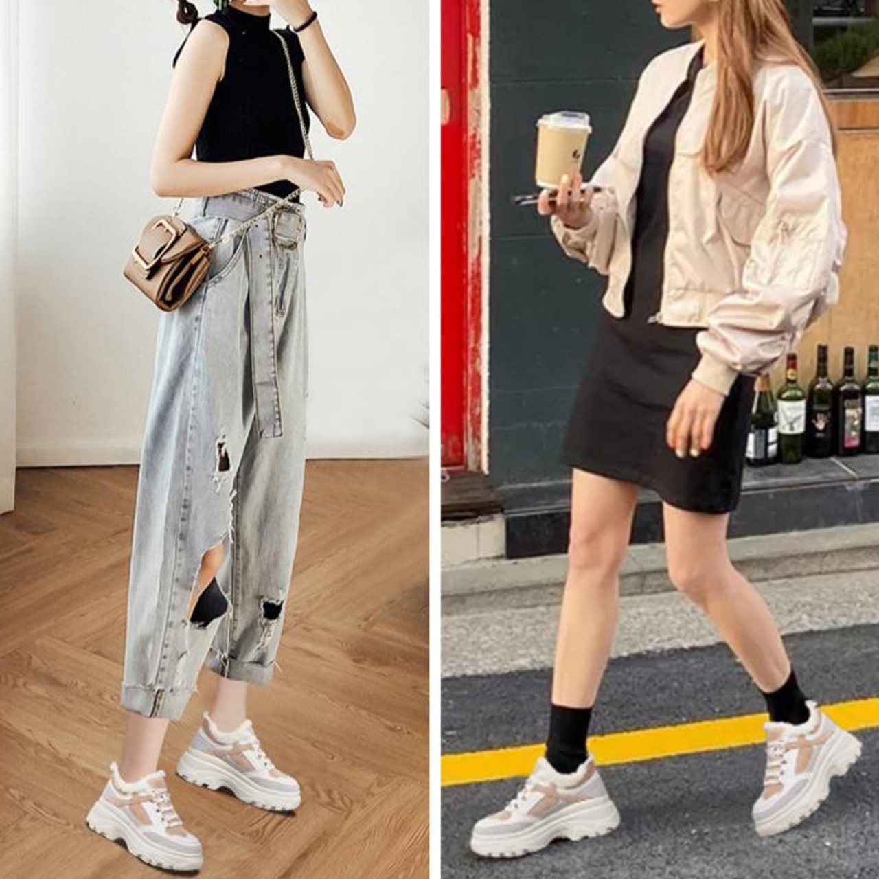 ふわふわの裏ボアがあったかい厚底ダッドスニーカー!