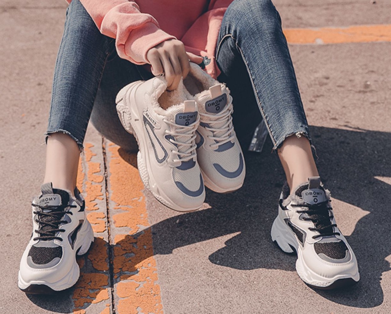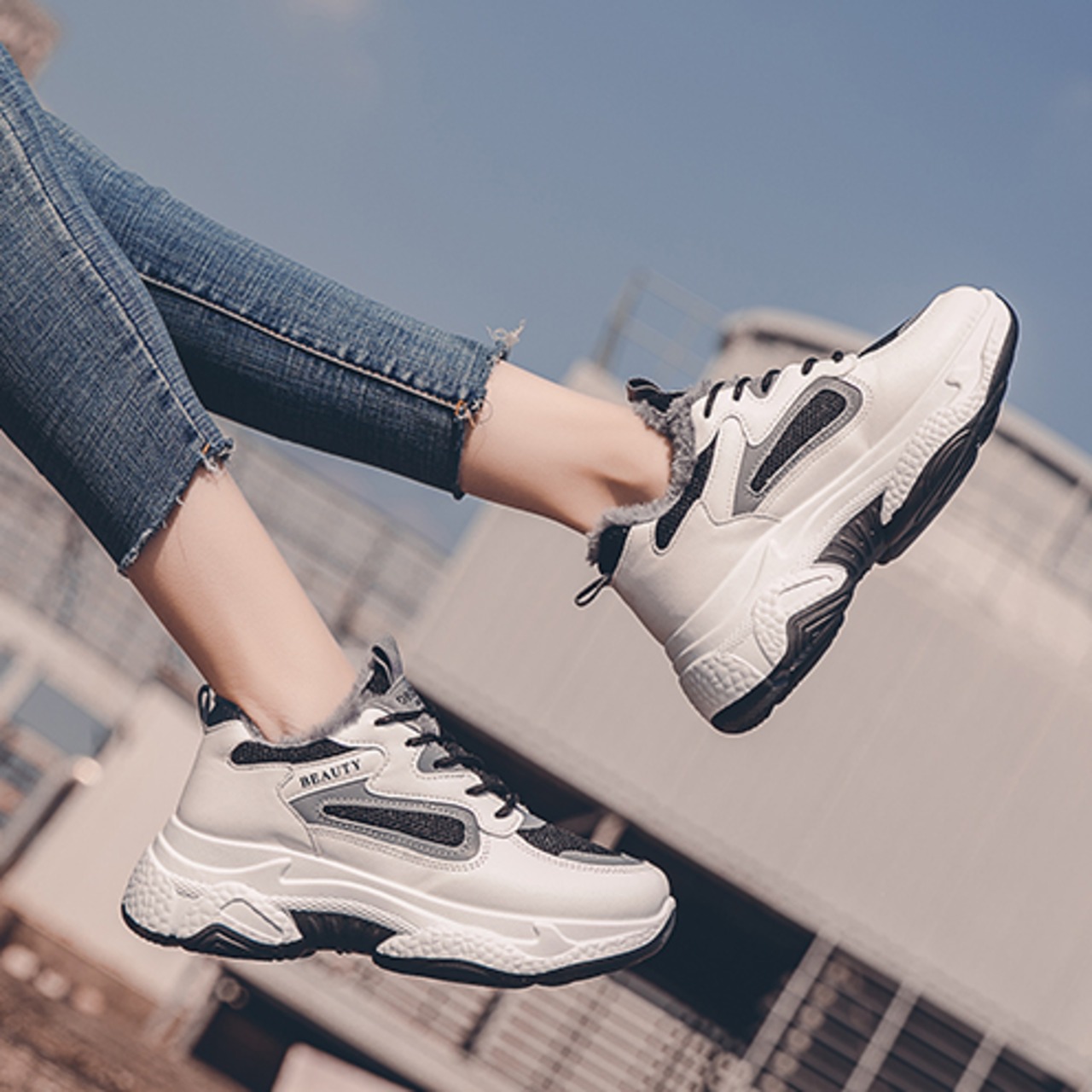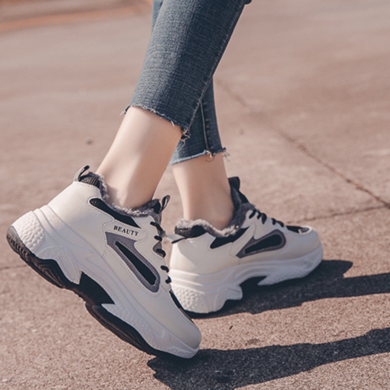 もこもこの裏ボアがあったかい厚底ダッドスニーカー!