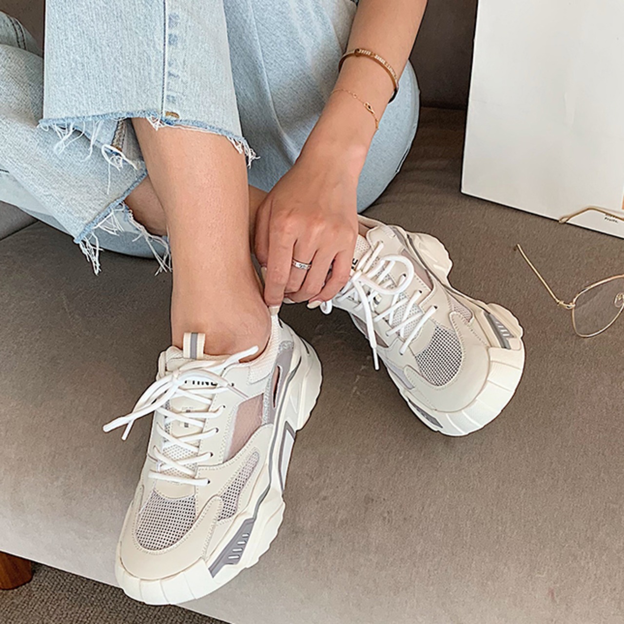 スニーカー 厚底スニーカー ダッドスニーカー 厚底 レースアップ ミドルソール 痛くない 歩きやすい 履きやすい 走れる 疲れにくい 脚長 スエード メッシュ 通気性 涼しい さわやか かわいい 大人可愛い シンプル カジュアル 大人 おしゃれ レトロ キュート スポーティー マニッシュ ボーイッシュ 存在感 春 夏 ウォーキング 配色 レディース 女性用 ママ OL 学生 デート お出かけ 女子会 休日 旅行 デイリー 普段使い