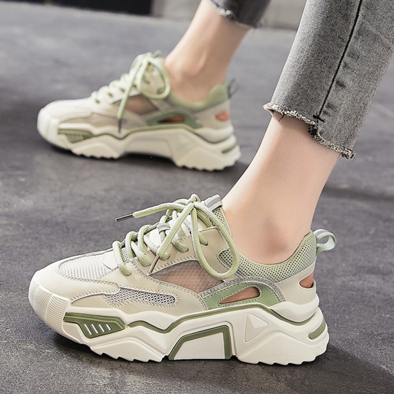 涼しげでさわやかな厚底カジュアルスニーカー。