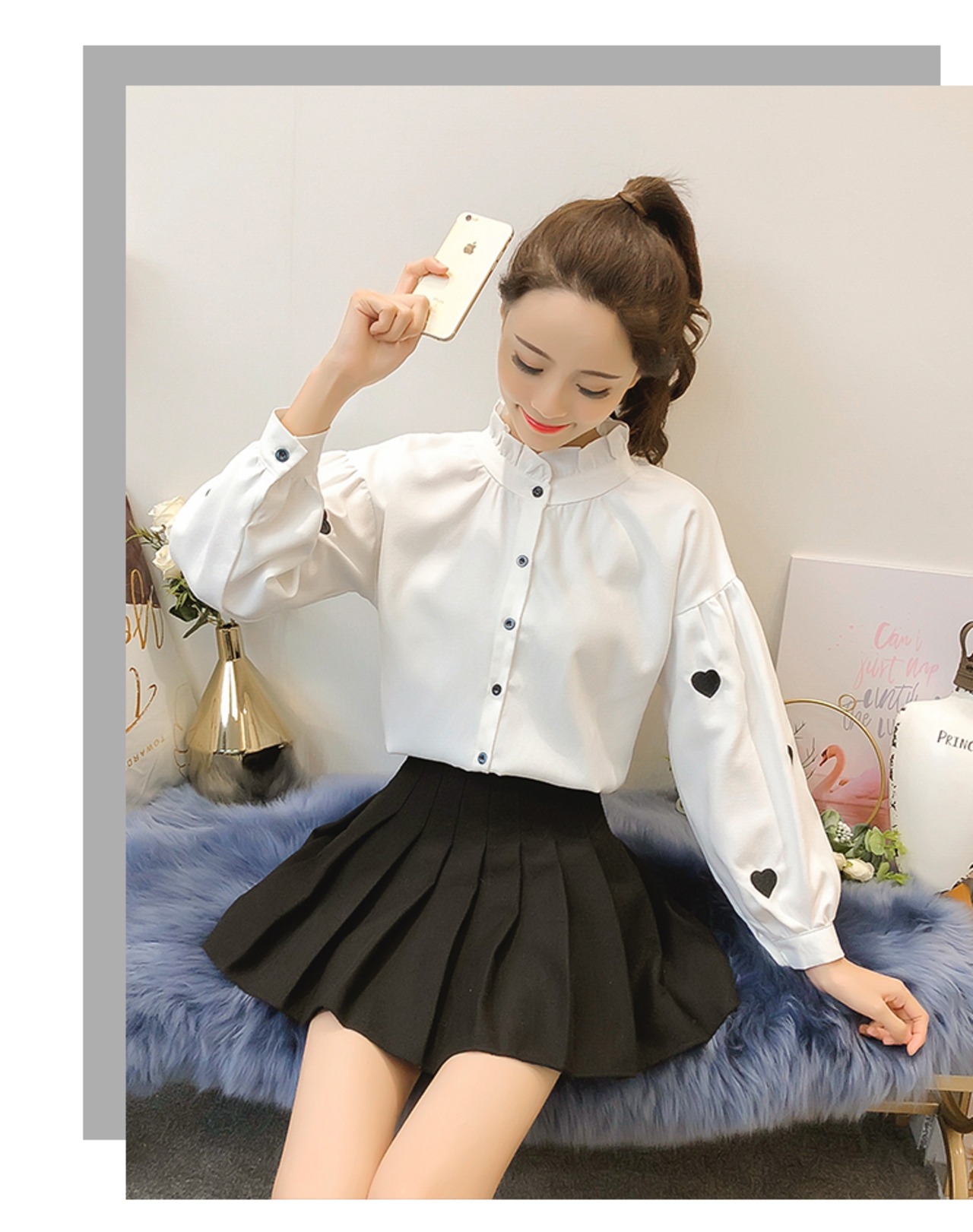 トップス シャツ ブラウス 白シャツ 白トップス 袖あり 長袖 ボリューム袖 パフスリーブ ドロップショルダー バルーンスリーブ クルーネック スタンドカラー 立ち襟 フリル 前開き 大人可愛い きれいめ シンプル カジュアル 大人 上品 おしゃれ お洒落 大人女子 こなれ感 ラブリー キュート ガーリー エレガント 抜け感 フェミニン ロマンチック クラシカル 柄 ハート 春 秋 冬 レディース 女性用 学生 通学 デート お出かけ 着回し 普段使い モテ プレゼント ギフト プチプラ