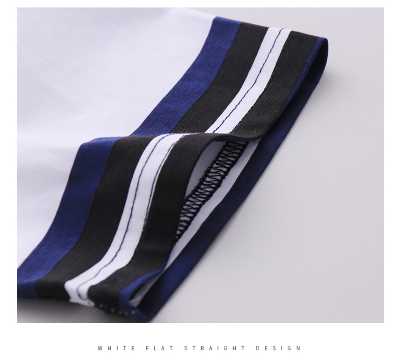 袖口のブルーのラインが爽やかで涼し気な印象を演出します。