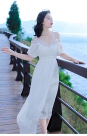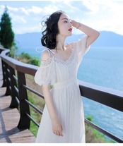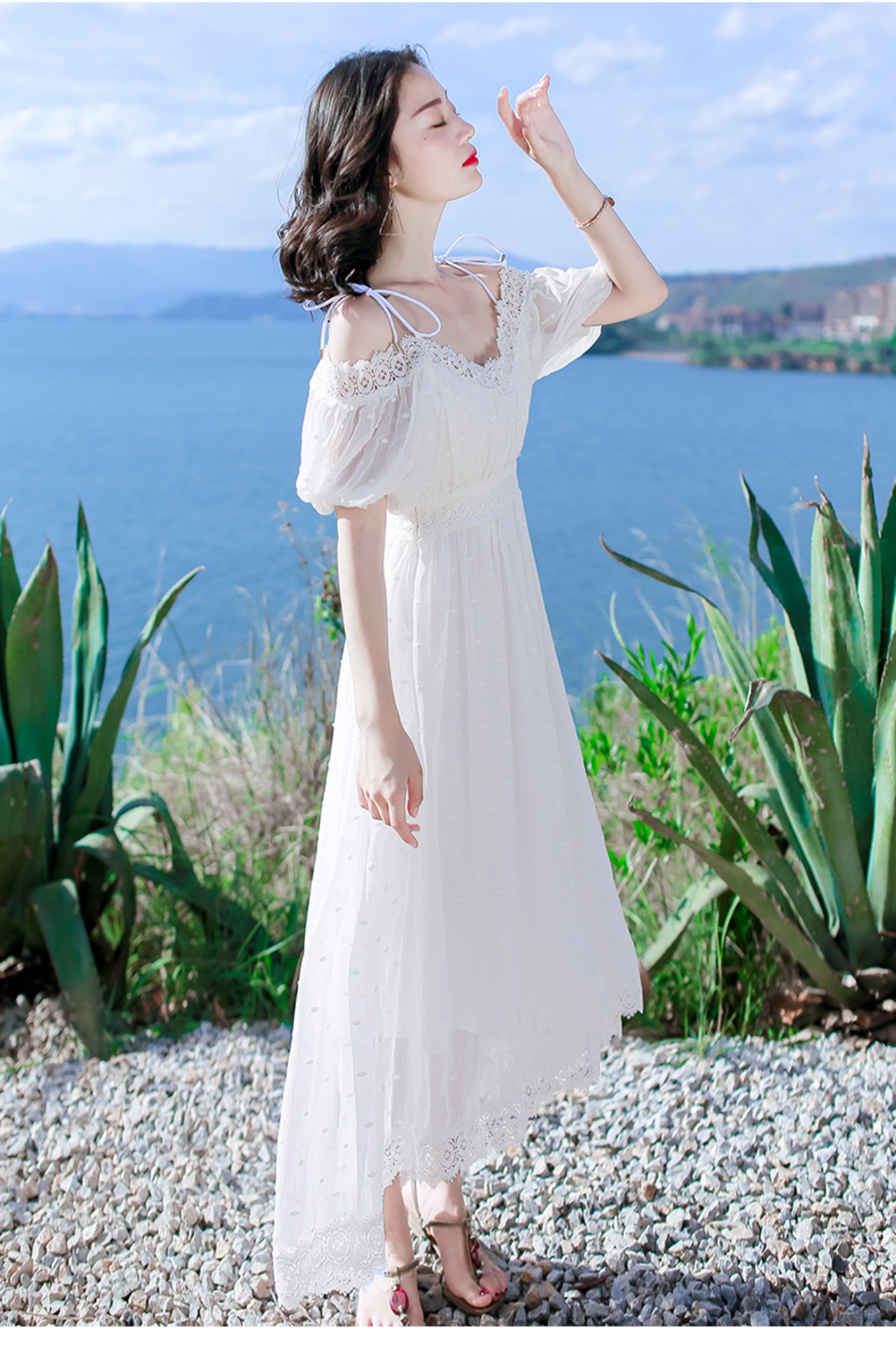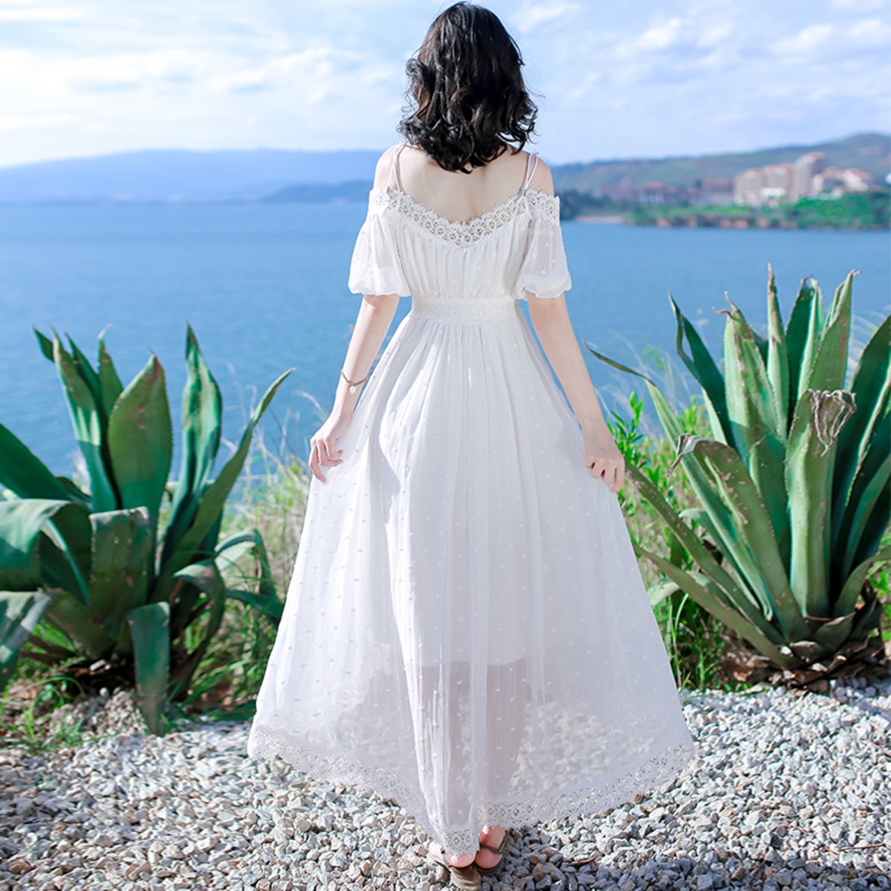 リゾートやビーチで映えること間違いなしのホワイトワンピースです。