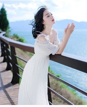 ワンピース 白トップス フレアワンピース ロング ロング丈 袖あり 半袖 フレア セミフレア Aライン レース 大人可愛い カジュアル おしゃれ お洒落 キュート ガーリー 個性的 主役級 存在感 抜け感 春 夏 2022 2023 10代 20代 30代 レディース 女性用 ママ マタニティ お出かけ 休日 パーティー イベント リゾート 旅行 海 プール 高原 モテ インスタ映え S M L 白 ホワイト