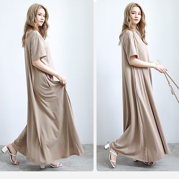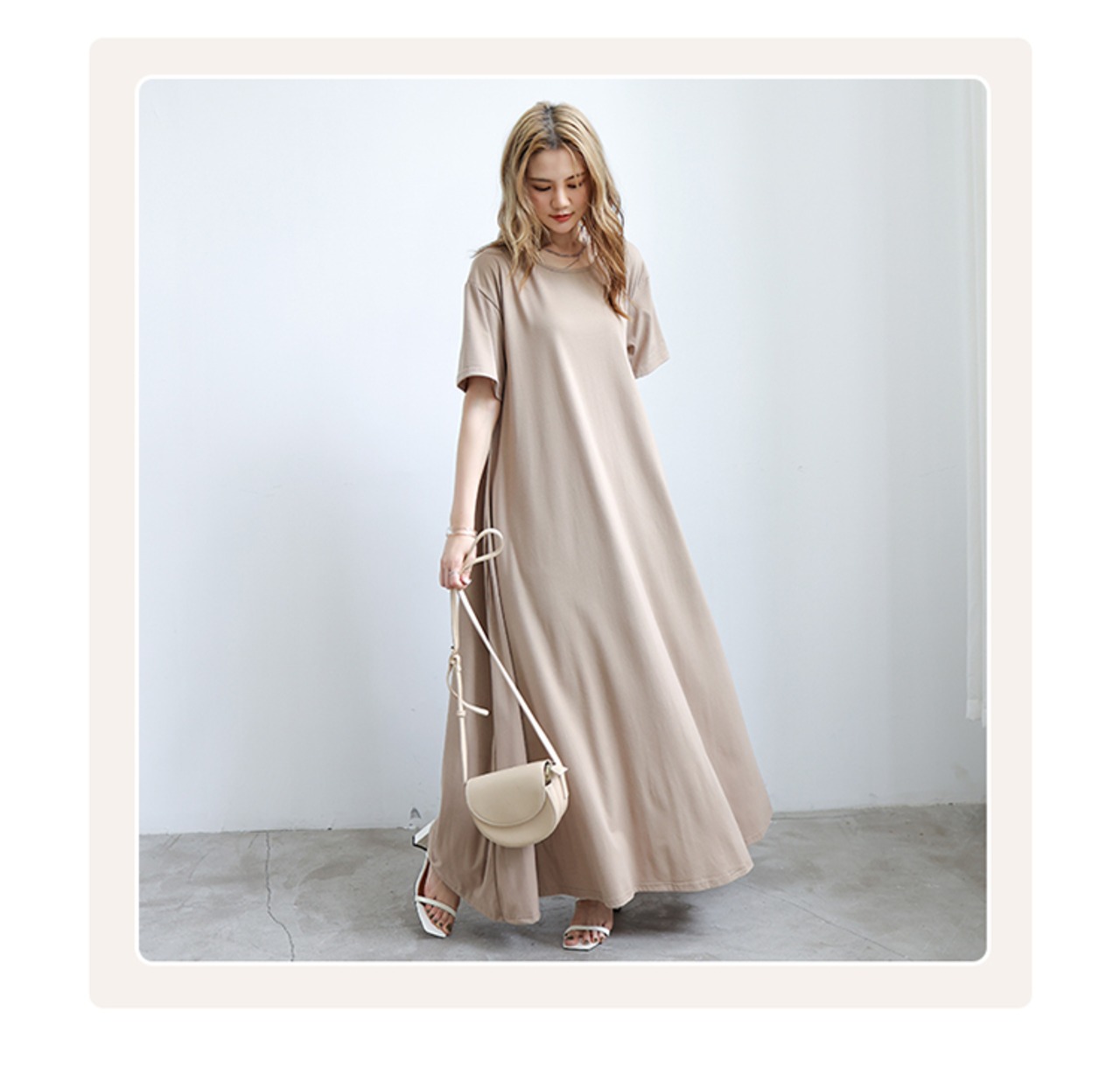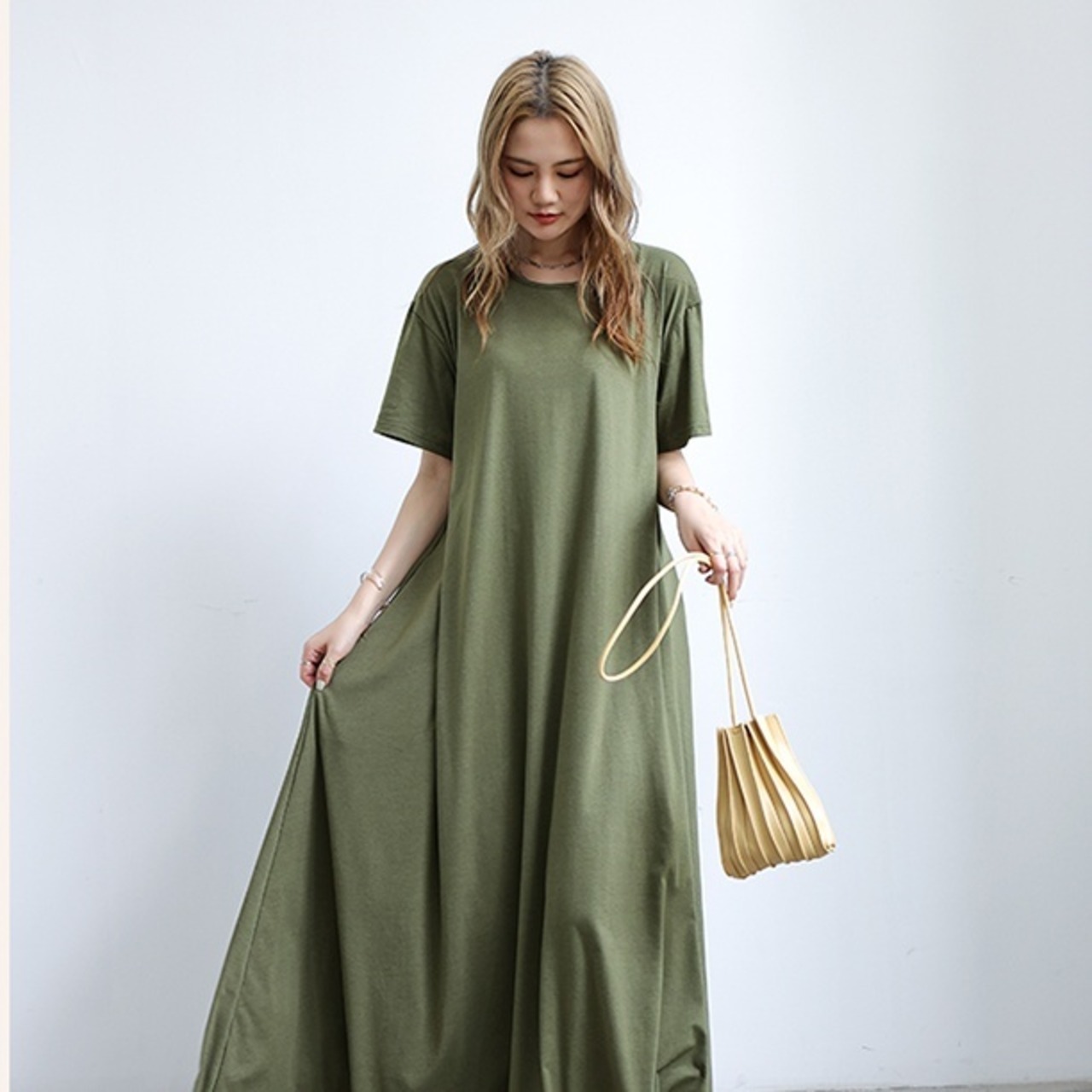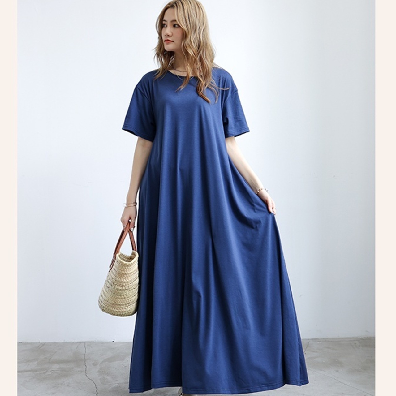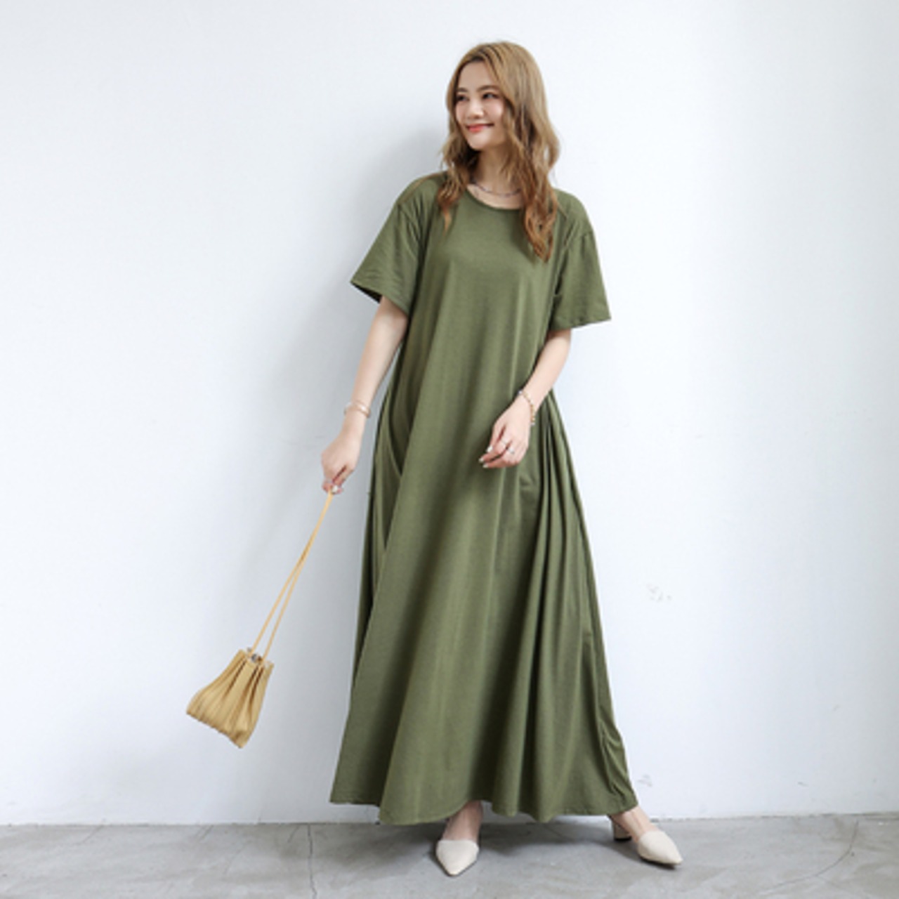 ワンピース Tシャツ フレアワンピース ワンピドレス ロング丈 袖あり 半袖 ラウンドネック 襟なし Aライン ふんわり 綿 かわいい 大人可愛い きれいめ シンプル カジュアル 大人 上品 おしゃれ かっこいい レトロ こなれ感 ラフ メンズライク ボーイッシュ 個性的 存在感 無地 春 夏 秋 冬 オールシーズン 10代 20代 30代 40代 50代 60代 レディース 通勤 学生 お出かけ お泊まり 休日 運動 ジム イベント リゾート 旅行 海 着回し 普段使い 韓国 体系カバー インスタ映え