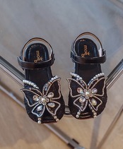 【子ども】女の子 かわいい 蝶のお姫様サンダル ブラック お出かけ 15cm~21cm