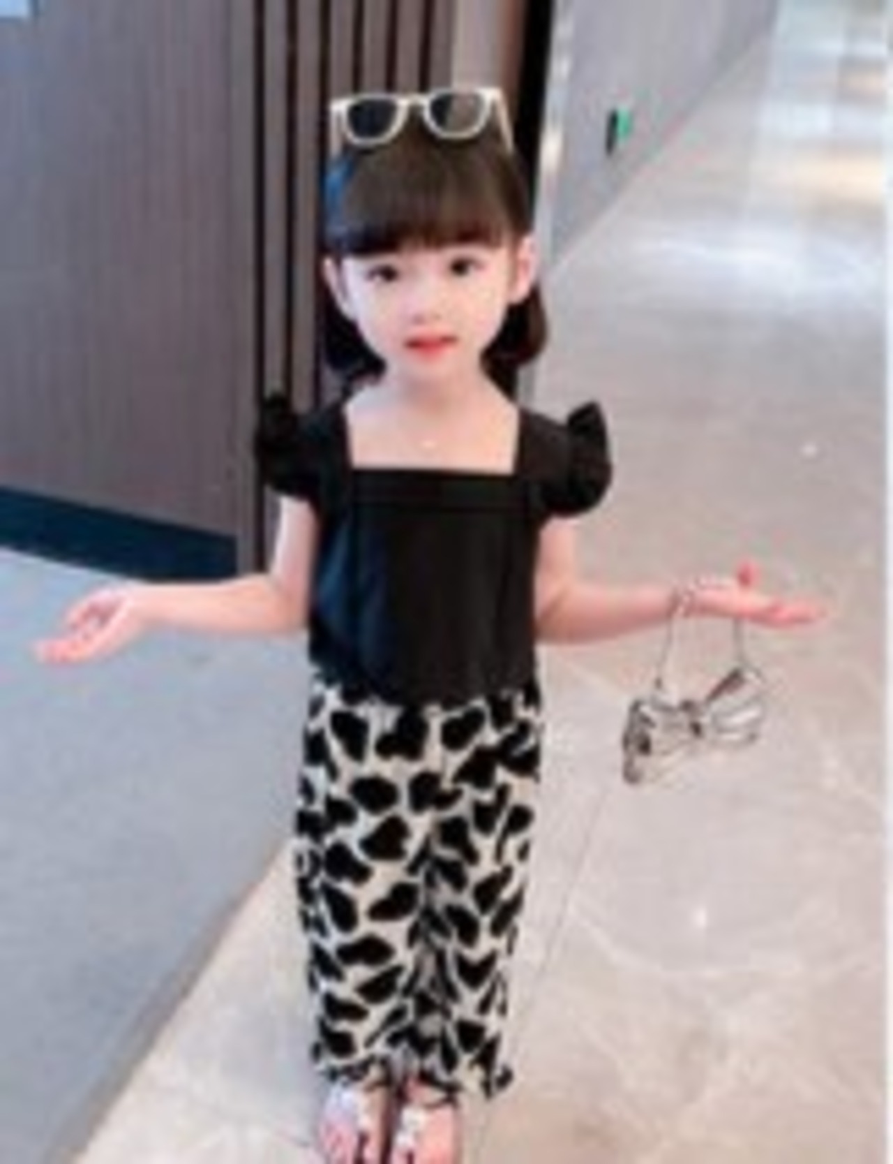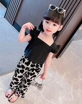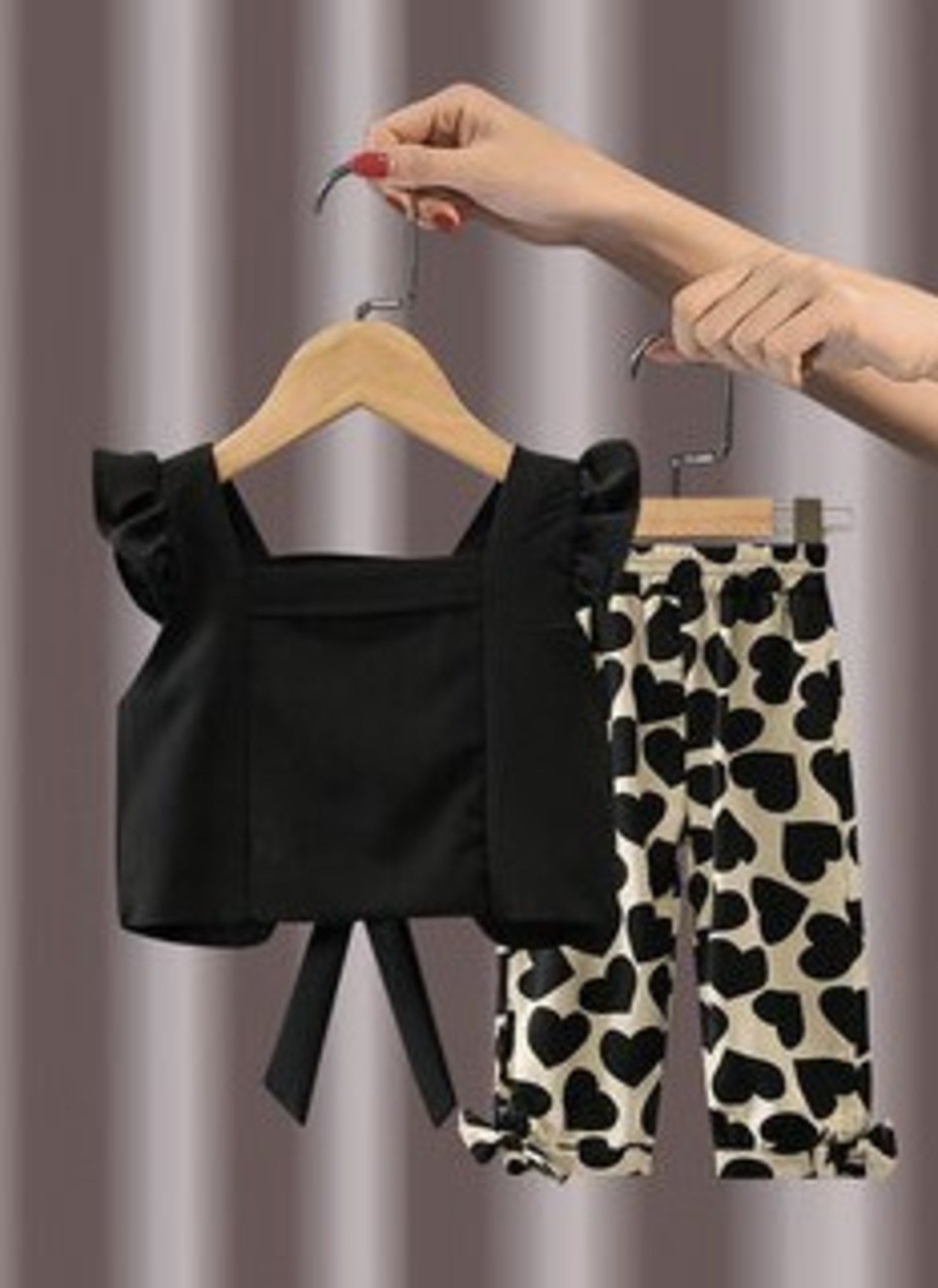【子ども】女の子 かわいい キッズ ガーリー キュート 黒 ノースリーブトップス と ハート柄パンツ セットアップ ハート柄 80cm~140cm
