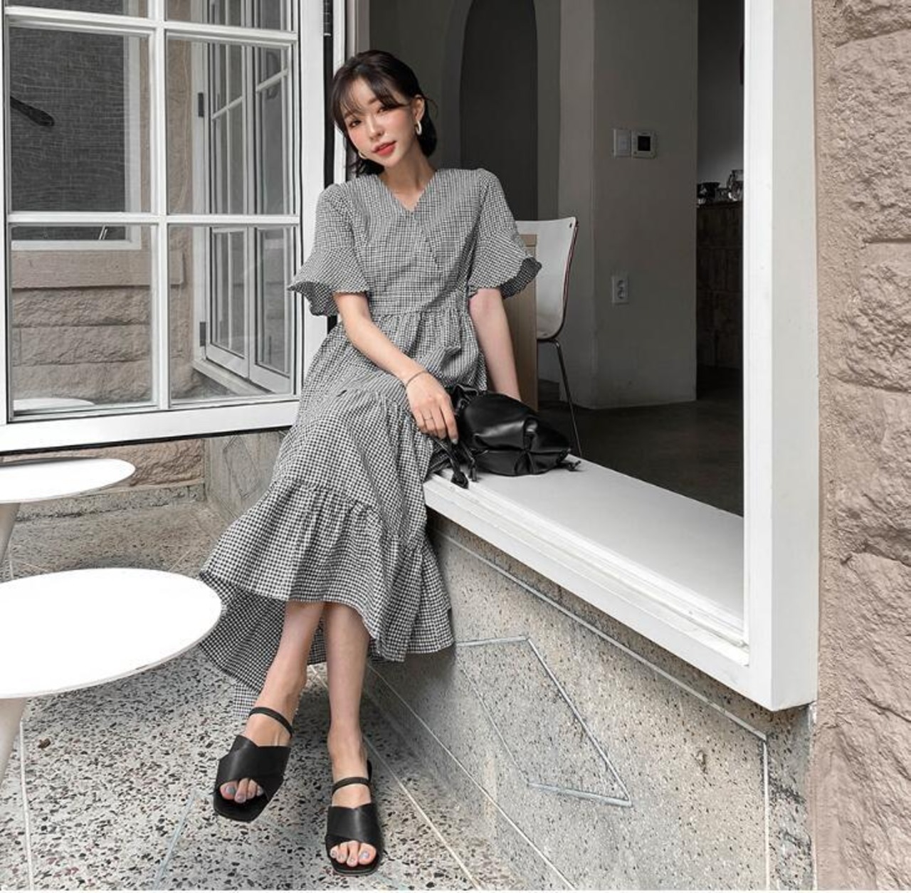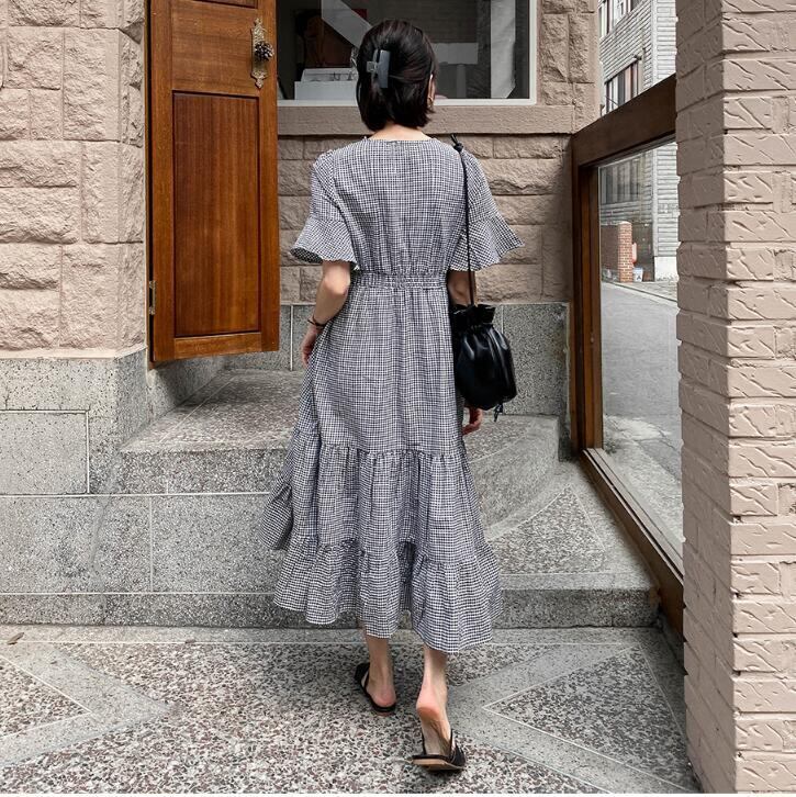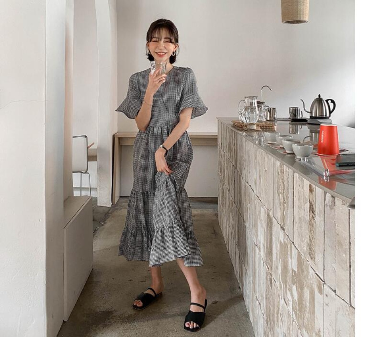 ワンピース ティアードワンピース ロング ロング丈 マキシ マキシ丈 袖あり 半袖 フレアスリーブ Vネック フレア セミフレア Aライン 大人可愛い きれいめ カジュアル 上品 おしゃれ お洒落 大人女子 こなれ感 ラフ ラブリー キュート ガーリー 主役級 存在感 とろみ感 抜け感 チェック柄 春 夏 2022 2023 10代 20代 30代 40代 50代 60代 レディース 女性用 女の子 デート お出かけ 休日 リゾート 旅行 高原 ガーデン モテ S M L XL