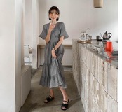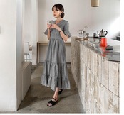 チェック柄が可愛いロング丈のティアードワンピースです。