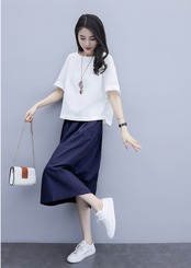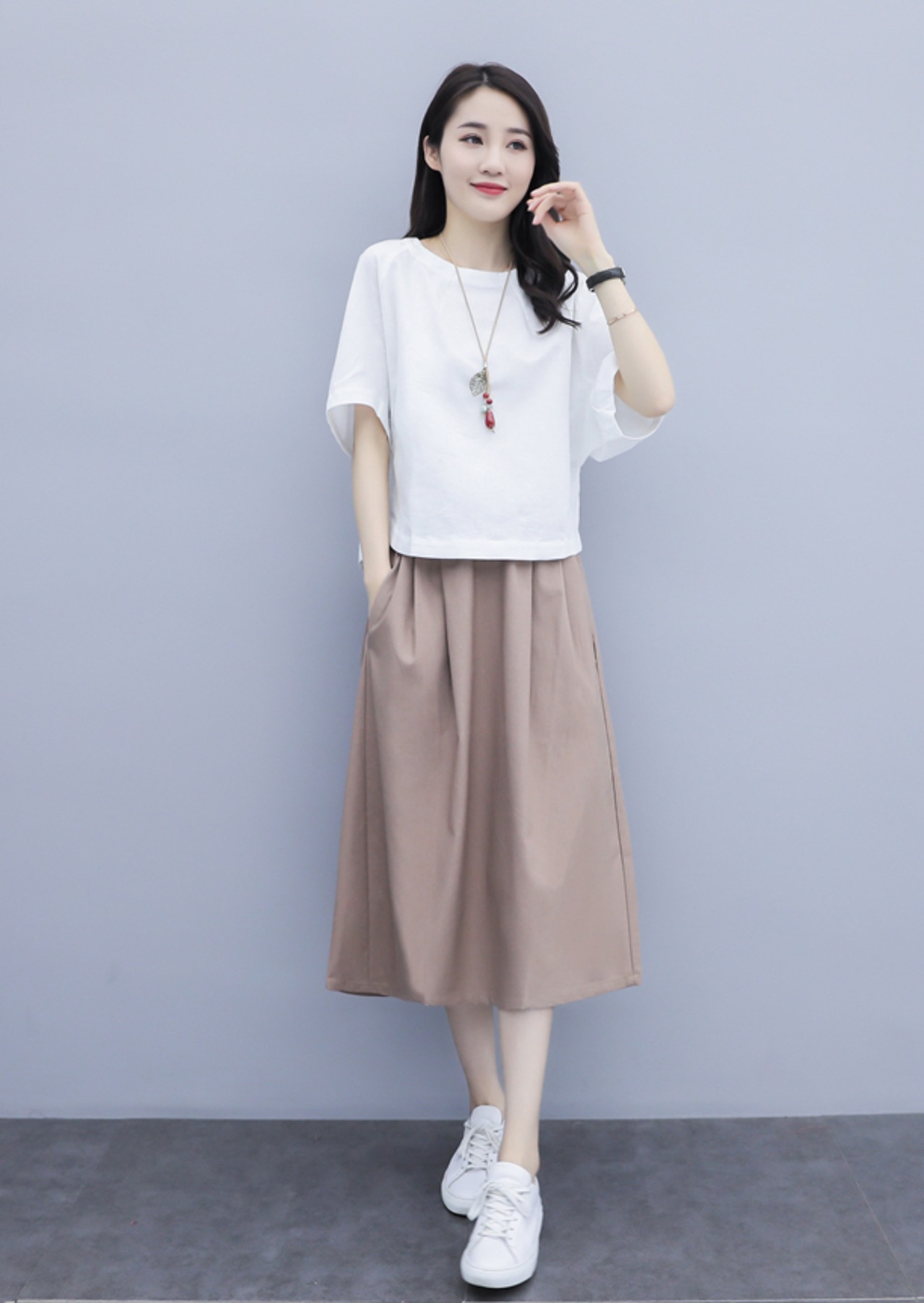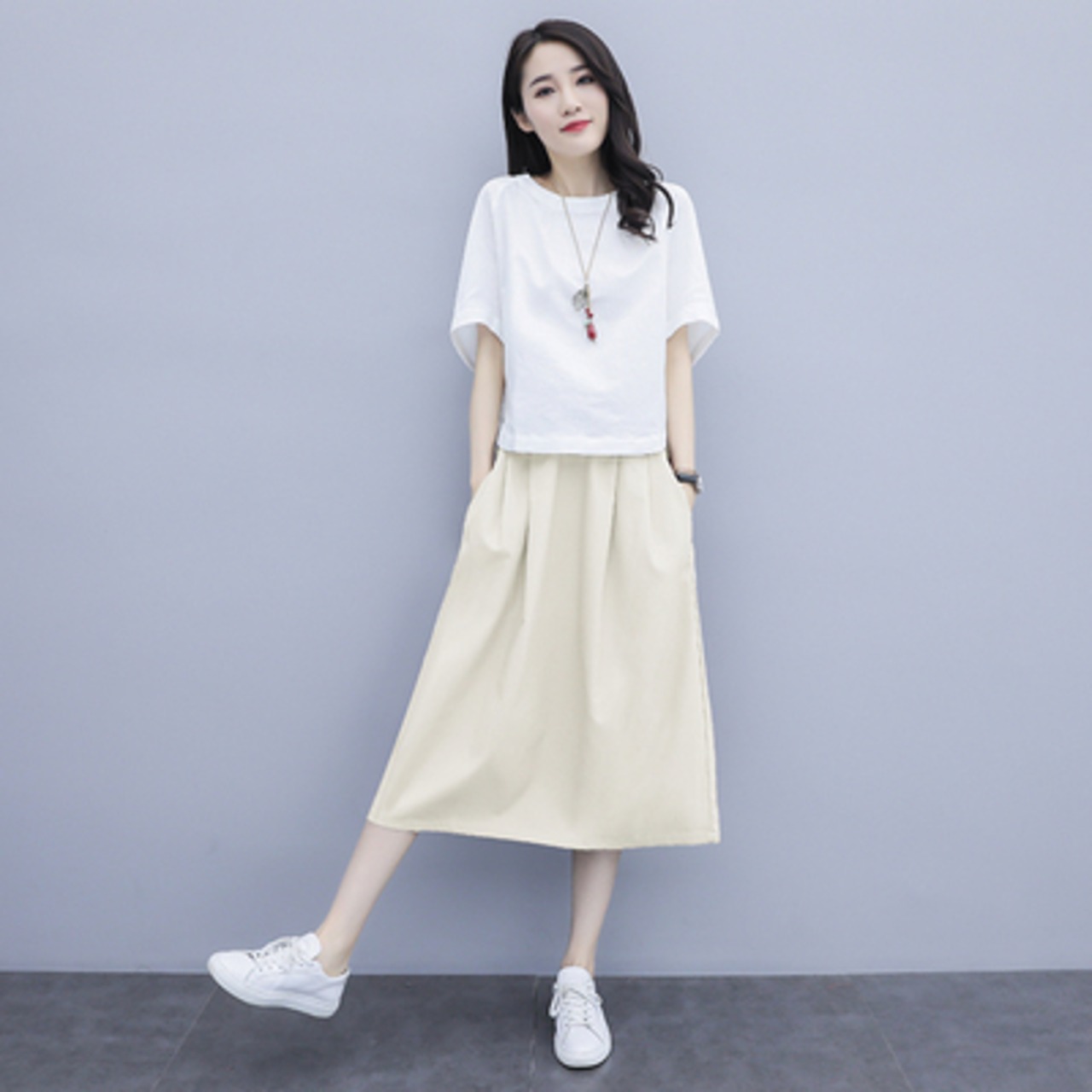 トップス スカート セットアップ ティアードワンピース 膝下 ミモレ 袖あり 半袖 ラウンドネック ストレート 2点セット ツーピース 上下セット きれいめ シンプル カジュアル 大人 上品 おしゃれ お洒落 大人女子 こなれ感 ラフ とろみ感 抜け感 春 夏 2022 2023 10代 20代 30代 40代 50代 60代 レディース 女性用 普段使い ファッション コーデ スタイル 楽ちん S M L XL 2XL 3XL 白 ホワイト 青 ブルー 茶色 ブラウン オフホワイト ベージュ ネイビー