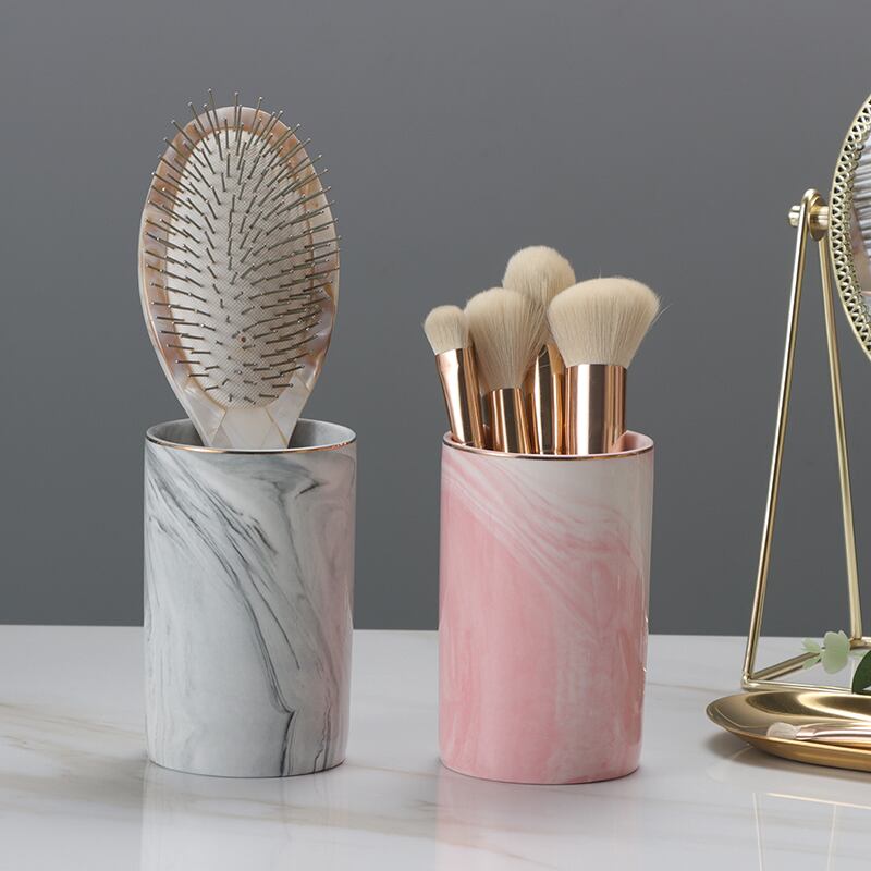 ブラシスタンド メイクブラシ スタンド ホルダー 2色 グレー ピンク 大理石 柄 筆立て ペン立て 小物入れ メイク道具 メイク道具入れ ゴールドフレーム 高級感 上品 おしゃれ かわいい 上品 ラブリー キュート ガーリー 高見え 格上げ モテ プレゼント ギフト 定番 トレンド 流行 インスタ映え