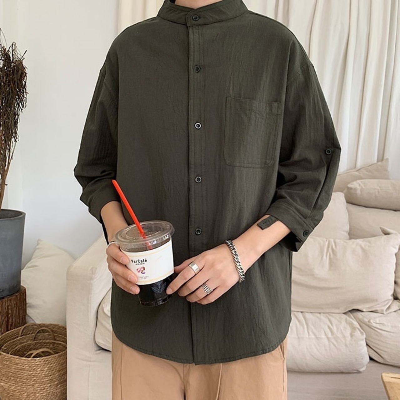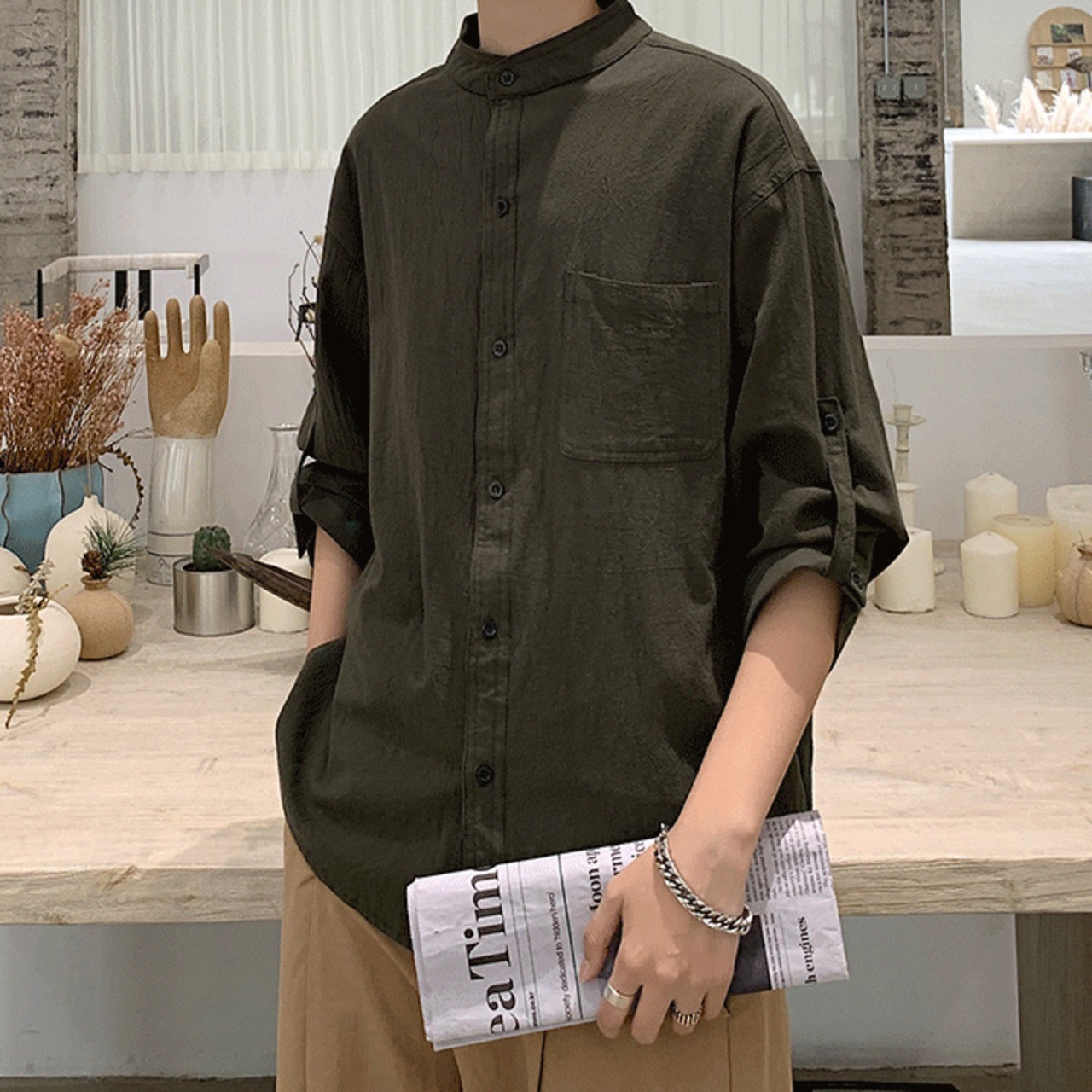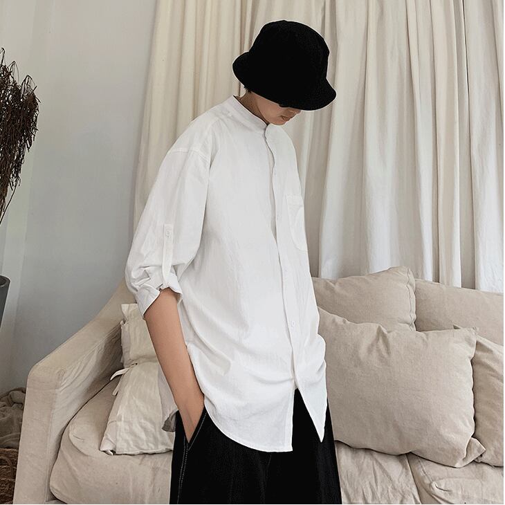 トップス シャツ カットソー プルオーバー 袖あり 7分袖 バンドカラー ストレート ポケット 前開き シングルブレスト 調節可能 ストラップ きれいめ シンプル カジュアル 大人 上品 おしゃれ かっこいい こなれ感 ラフ クール 主役級 存在感 らくちん 無地 春 夏 秋 冬 オールシーズン 謝恩会 二次会 20代 30代 40代 50代 60代 メンズ ビジネス 通勤 デート お出かけ 休日 イベント レストラン 着回し 普段使い スタイル 楽ちん モテ トレンド S M L XL 2XL